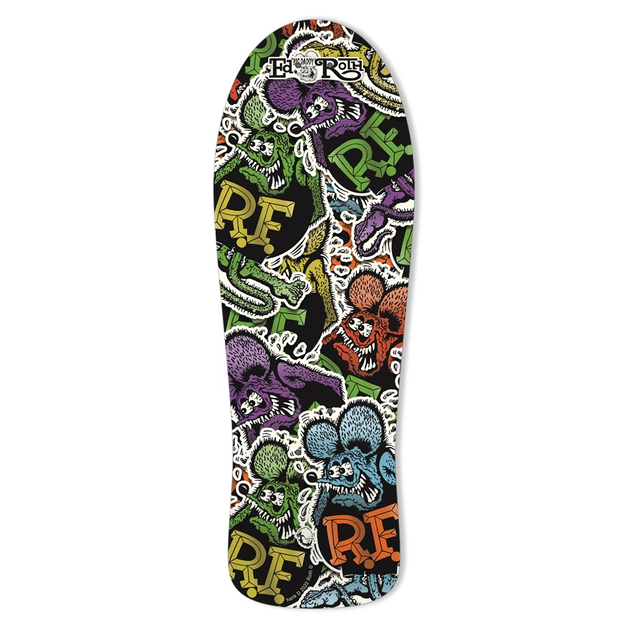 With its classic old-school shape, this skateboard offers a stable and smooth ride that is perfect for cruising around town or hitting the skate park. And with the Rat Fink stickers giving it a bold and eye-catching look, you're sure to turn heads wherever you go.