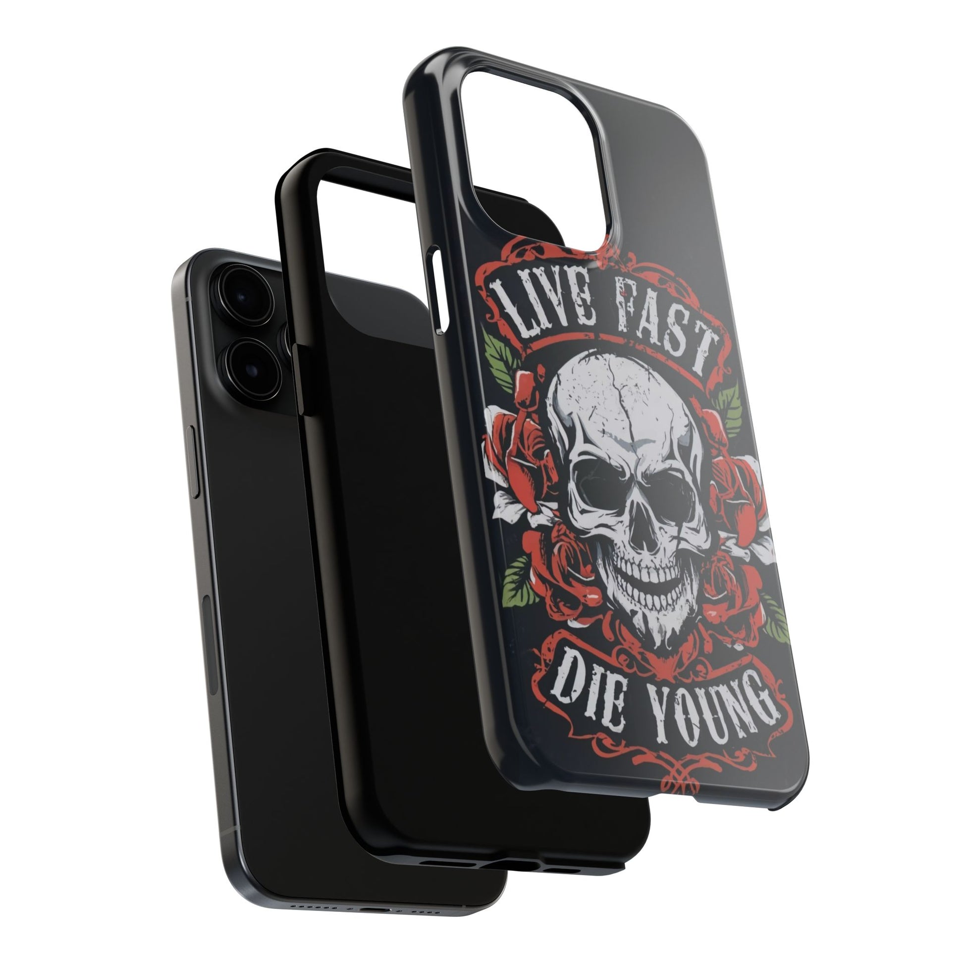 Introducing the Rose Requiem Defender Case, a bold and striking accessory featuring artwork of vibrant red roses intertwined with a skull, accompanied by the powerful mantra "Live Fast Die Young." This captivating composition captures the juxtaposition of beauty and mortality, making your device a stylish statement of rebellious spirit and fearless attitude.Defender Case Protection: Crafted for durability, the Rose Requiem case boasts advanced Defender technology, ensuring reliable protection against drops, impacts, and daily wear. Safeguard your device with strength and style.Bold Artwork: The focal point of this phone case is a captivating portrayal of vibrant red roses juxtaposed with a skull, adorned with the powerful mantra "Live Fast Die Young." The bold imagery evokes a sense of rebellion and fearlessness, making a bold statement wherever you go.Striking Composition: The artwork exudes a striking charm, inviting you to embrace the juxtaposition of beauty and mortality. The vibrant red roses, contrasted with the skull and powerful mantra, create a visually captivating composition that commands attention and sparks contemplation.Stylish and Functional: Beyond its artistic appeal, this phone case offers a perfect blend of style and functionality. The precise fit ensures easy access to buttons and ports, allowing for a seamless and user-friendly experience.Symbol of Rebellious Spirit: The Rose Requiem artwork symbolizes the rebellious spirit and fearless attitude of those who live life on their own terms. The powerful mantra "Live Fast Die Young" serves as a reminder to seize the moment and embrace life to the fullest.Compatibility Across Models: Compatible with various phone models, including iPhone 11, 12, 13, 14, 15, and more. Explore our range of sizes to find the perfect match for your device.Make a bold statement with the Rose Requiem Defender Case, an Etsy exclusive that celebrates the juxtaposition of beauty and mortality through vibrant red roses, a skull, and the powerful mantra "Live Fast Die Young," creating a harmonious fusion of style and protection for your device.