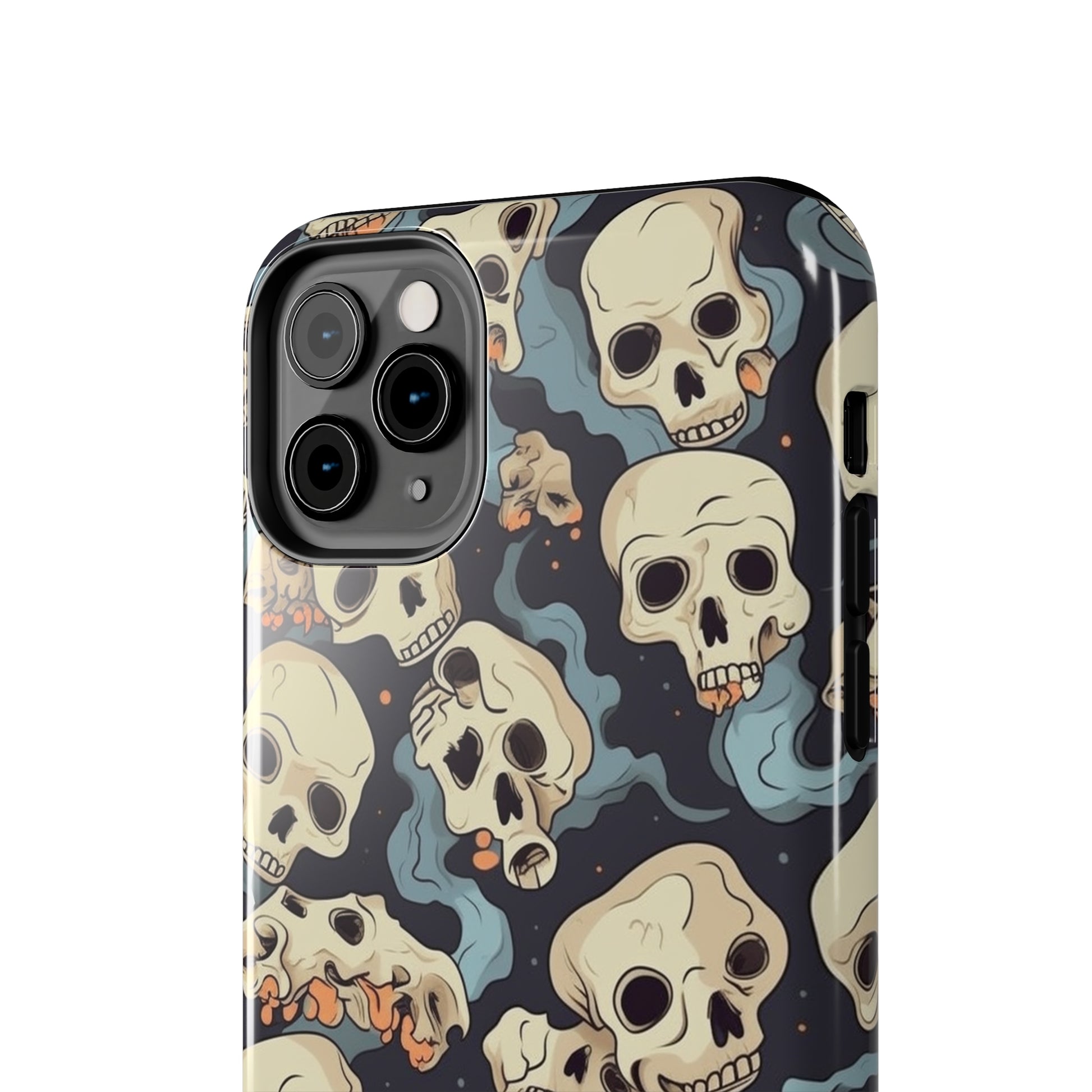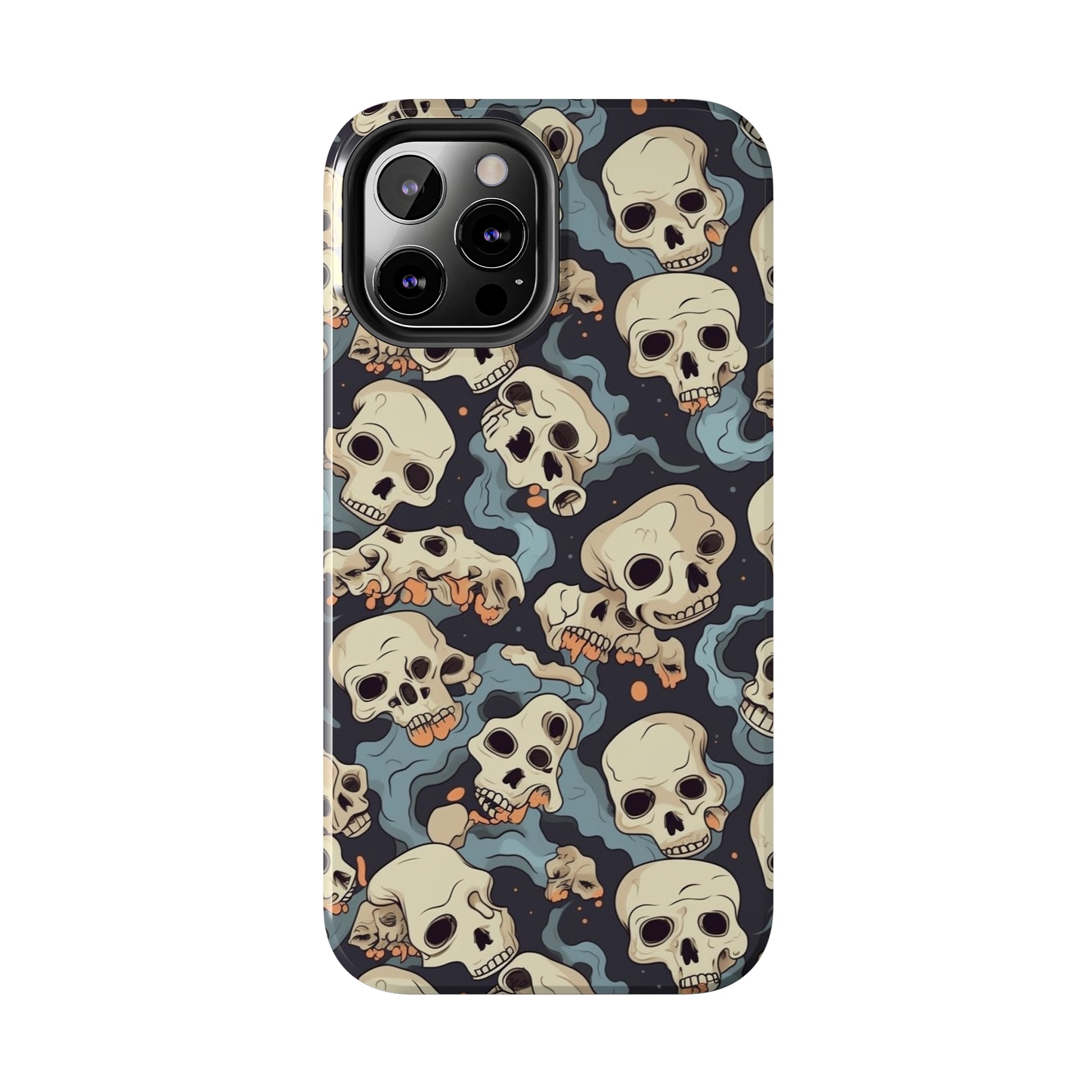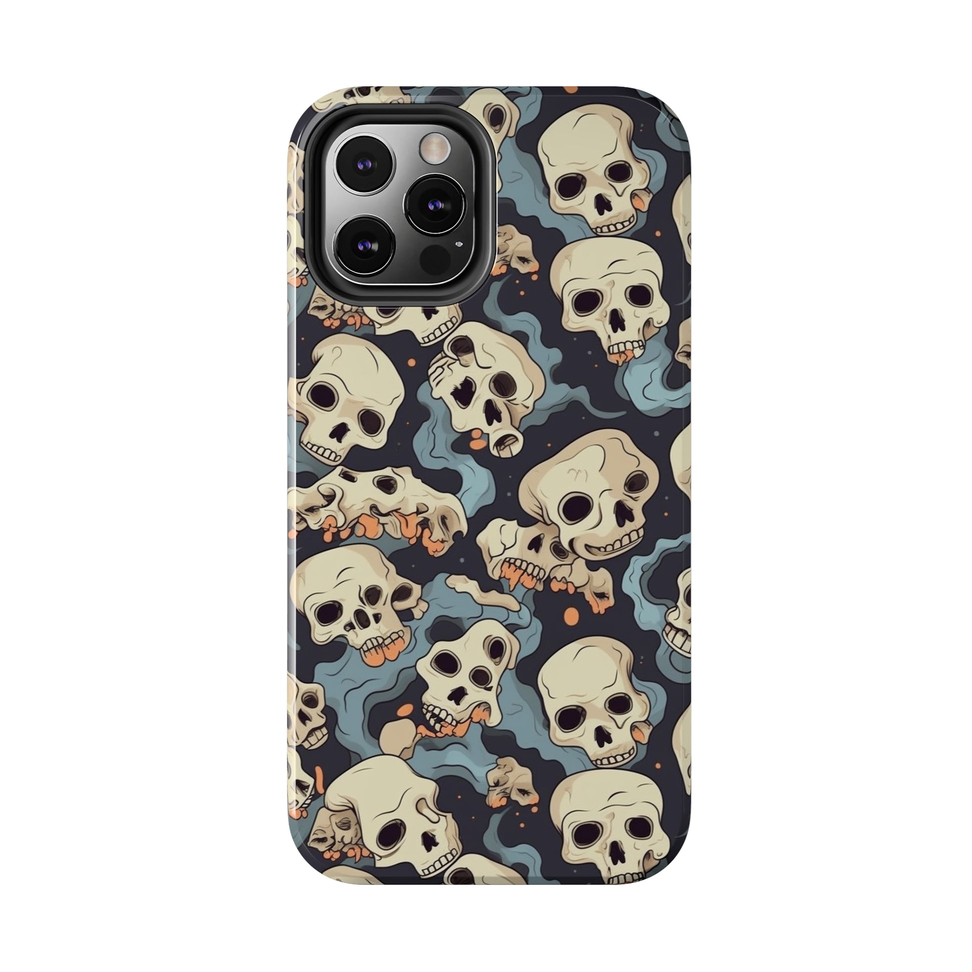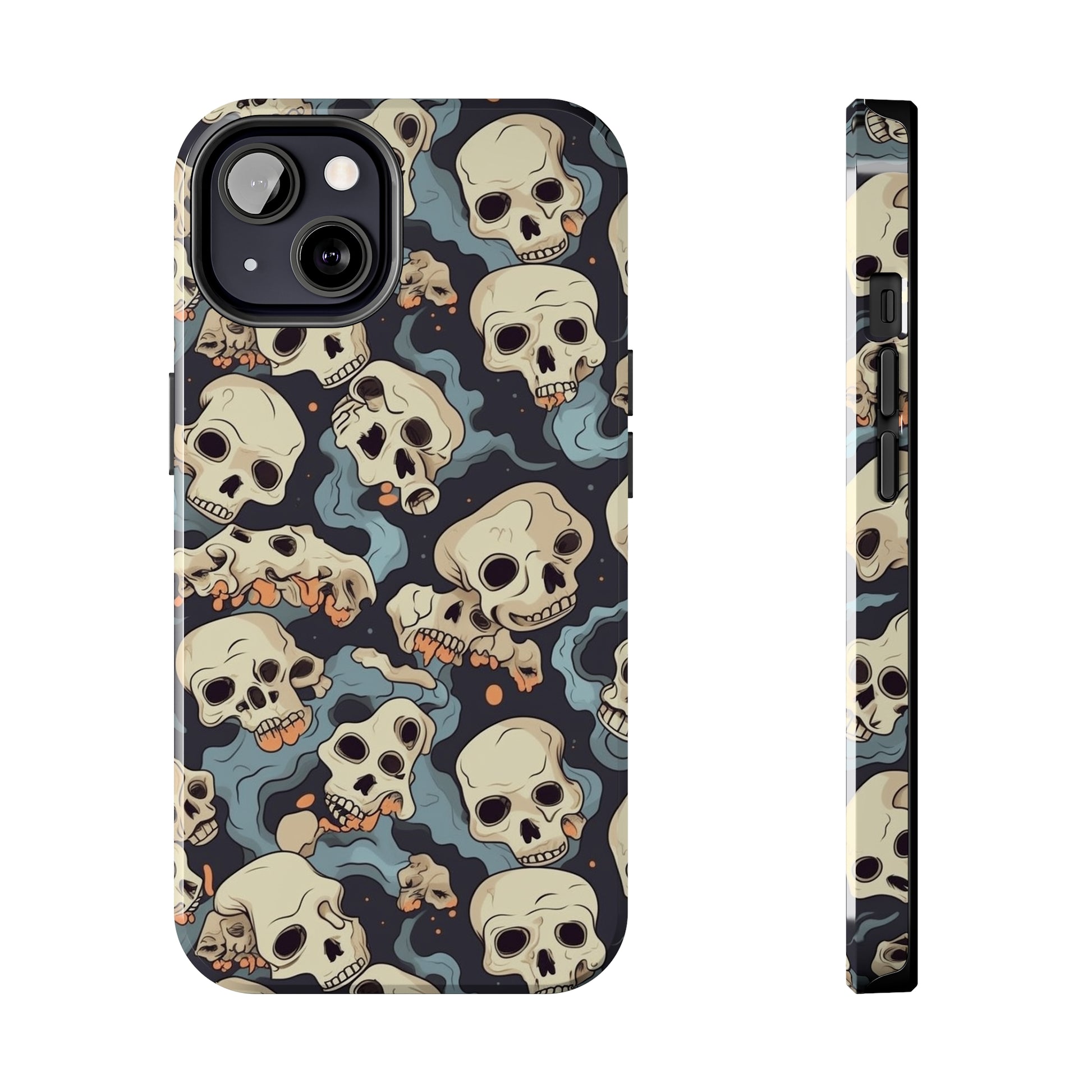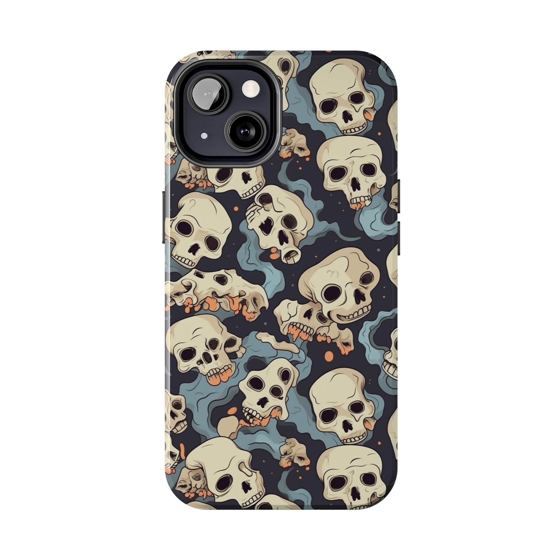 The Skull Flow - Deathly Protection - Tough Phone Cases from Case-Mate, the perfect accessory for those who demand both style and durability. This case features a stunning design of melting cream-colored skulls set against a dark blue background with flowing light blue goo, creating a striking and unique visual effect.