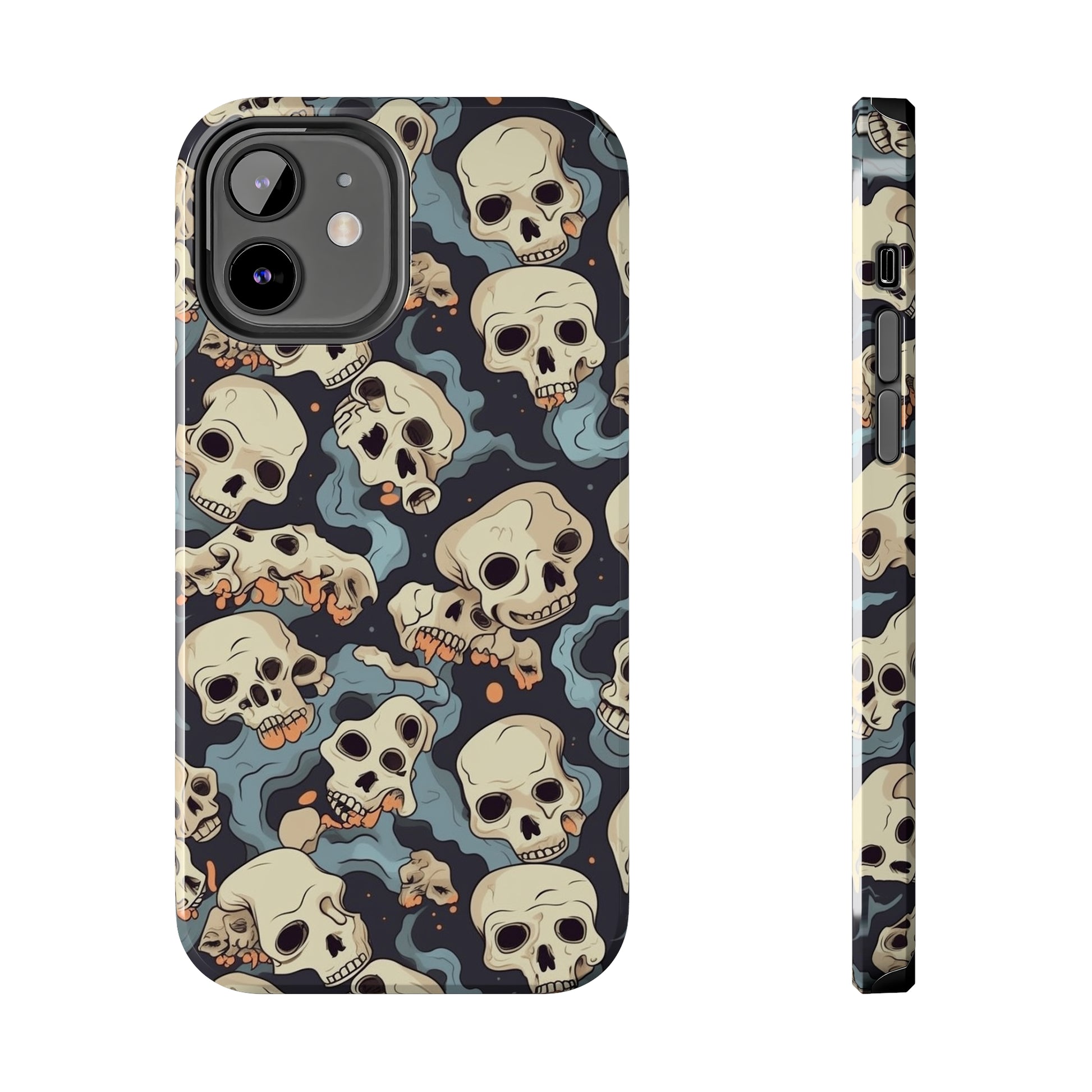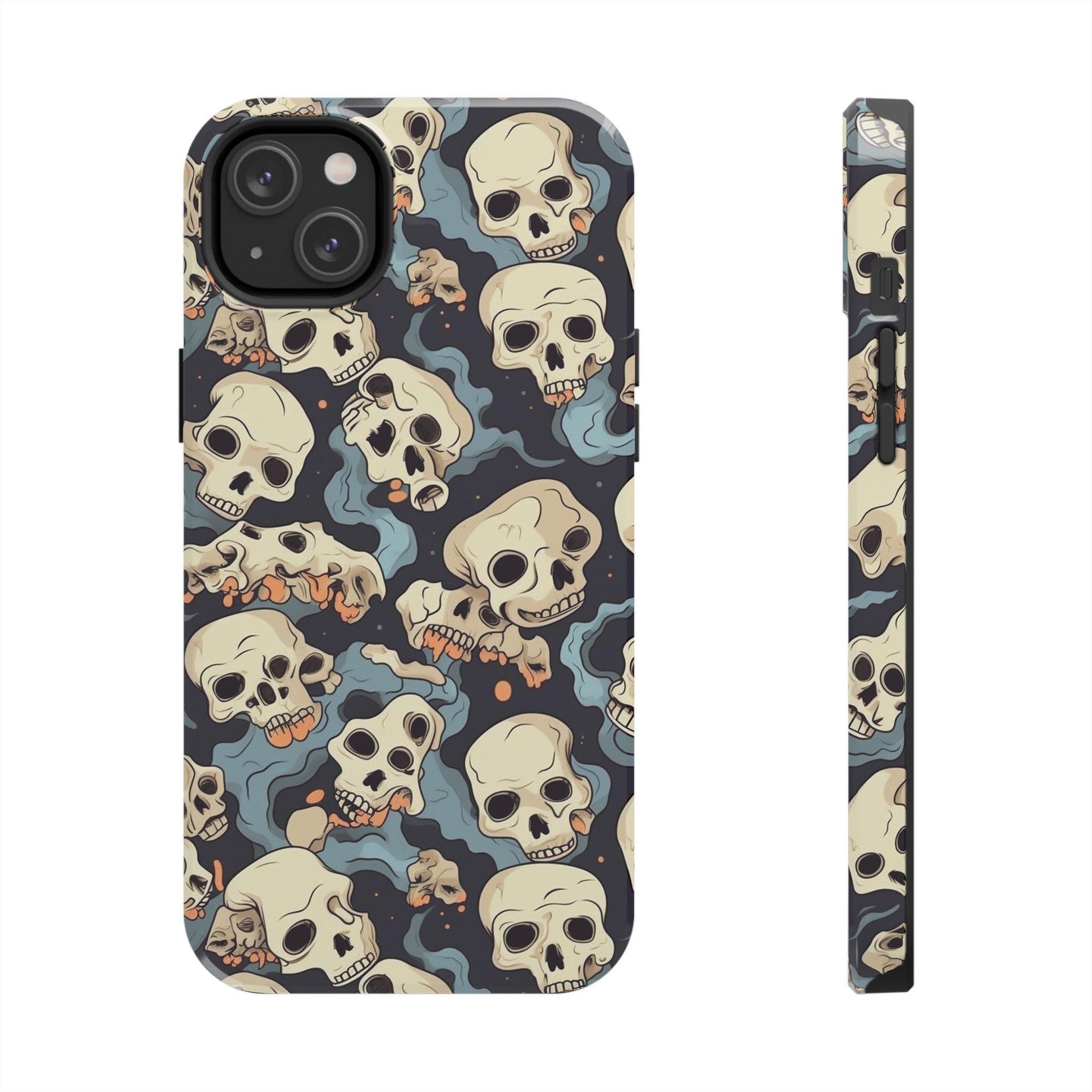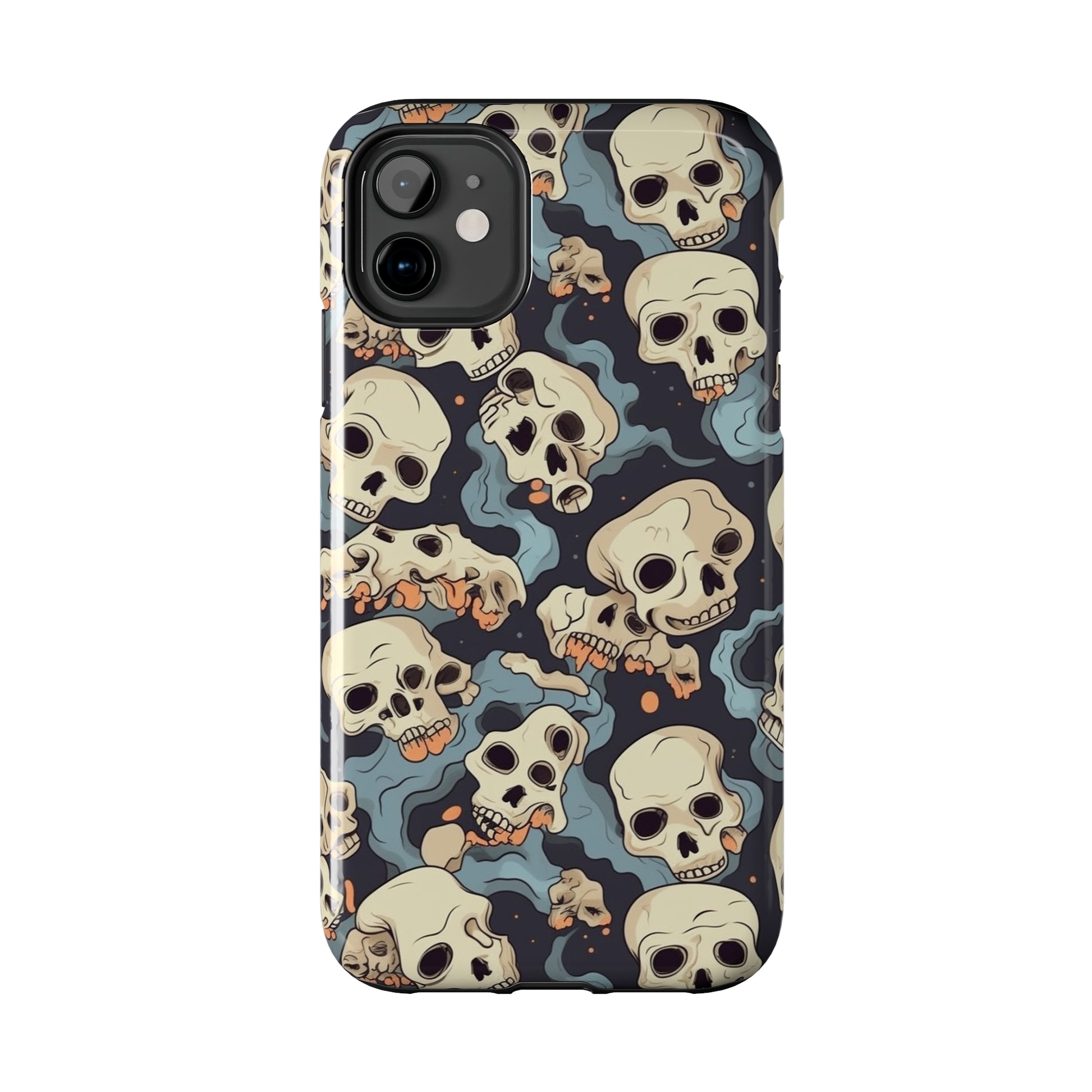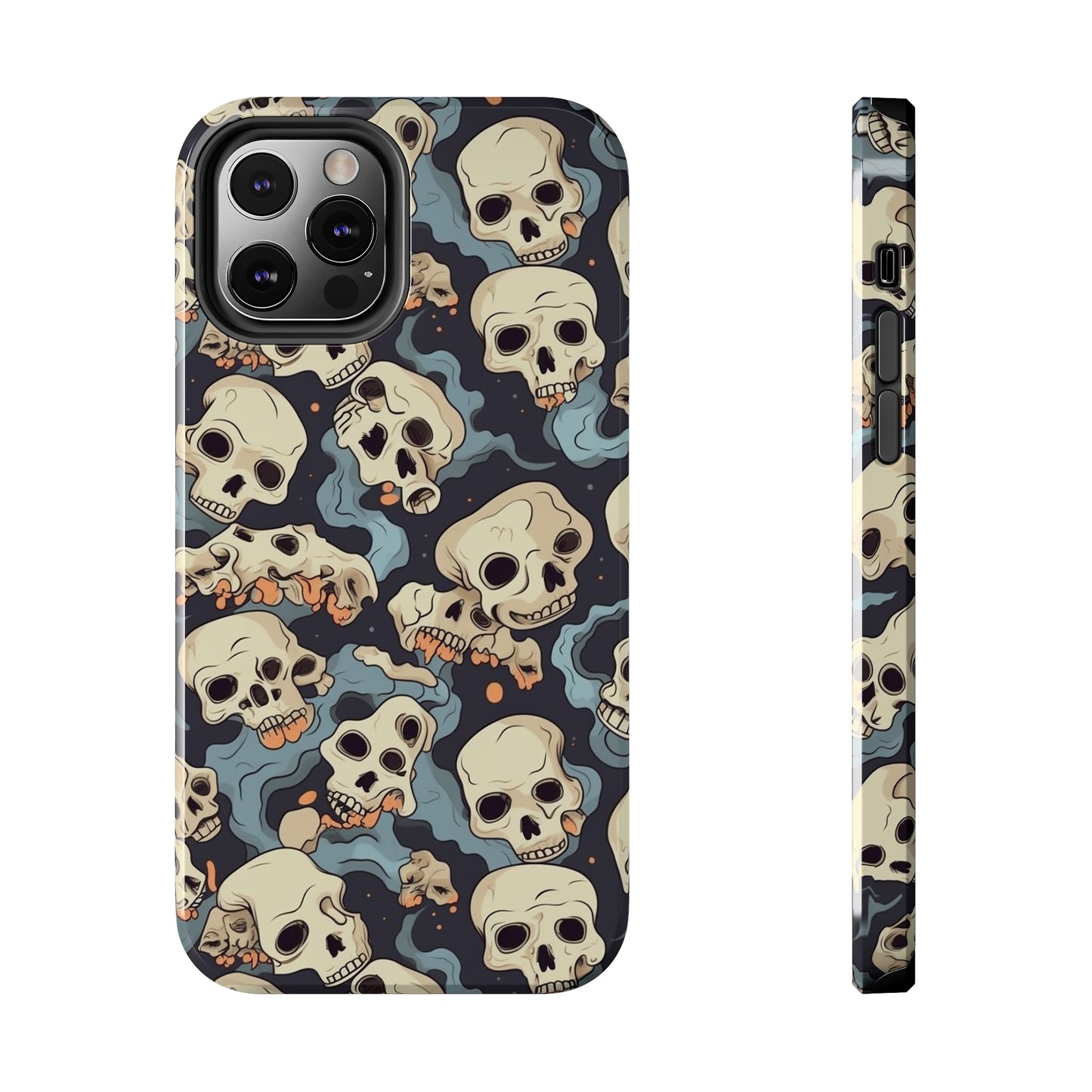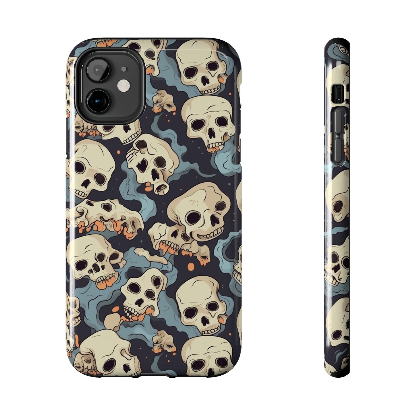 The Skull Flow - Deathly Protection - Tough Phone Cases from Case-Mate, the perfect accessory for those who demand both style and durability. This case features a stunning design of melting cream-colored skulls set against a dark blue background with flowing light blue goo, creating a striking and unique visual effect.