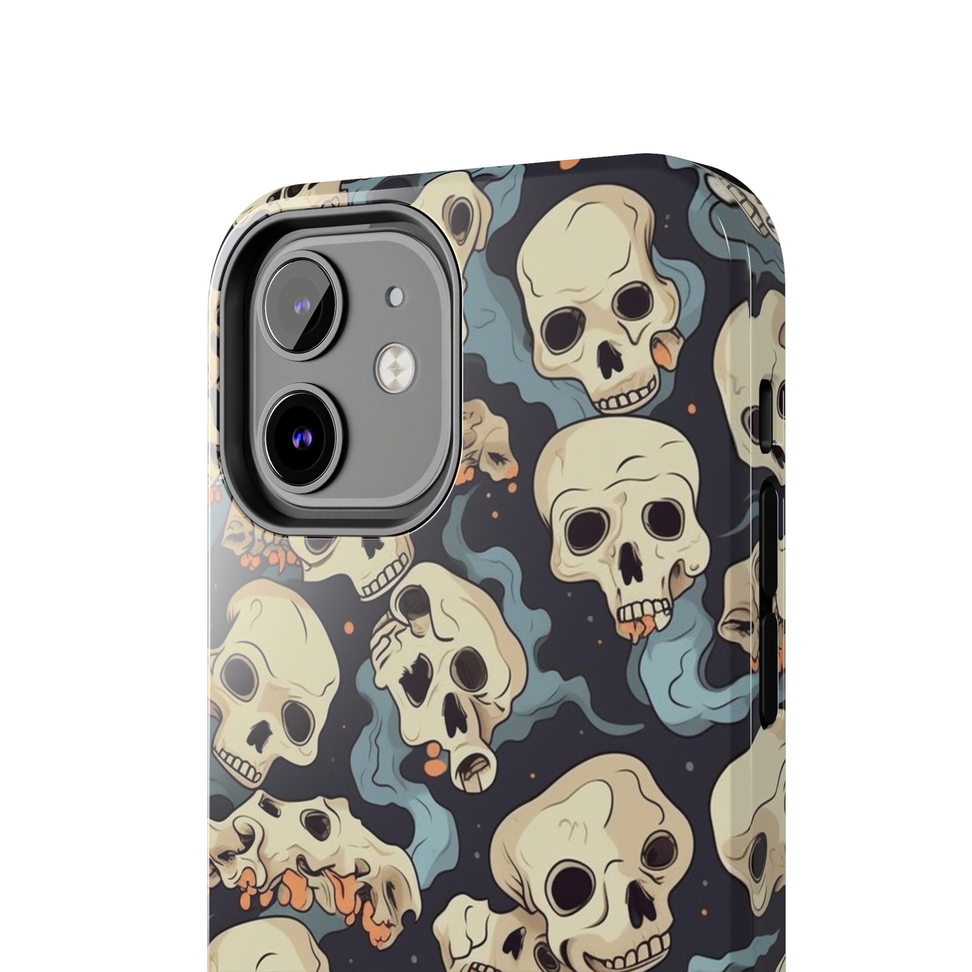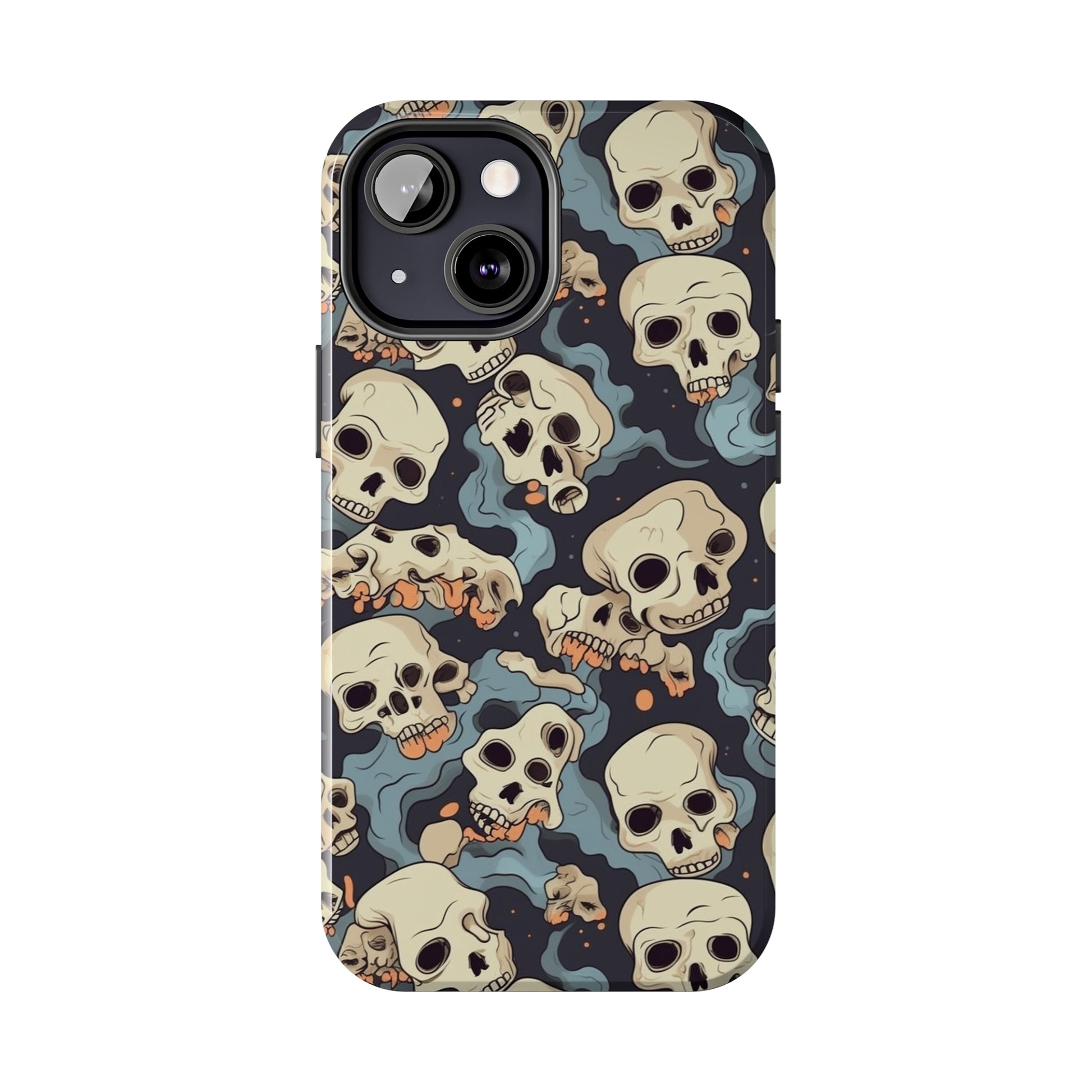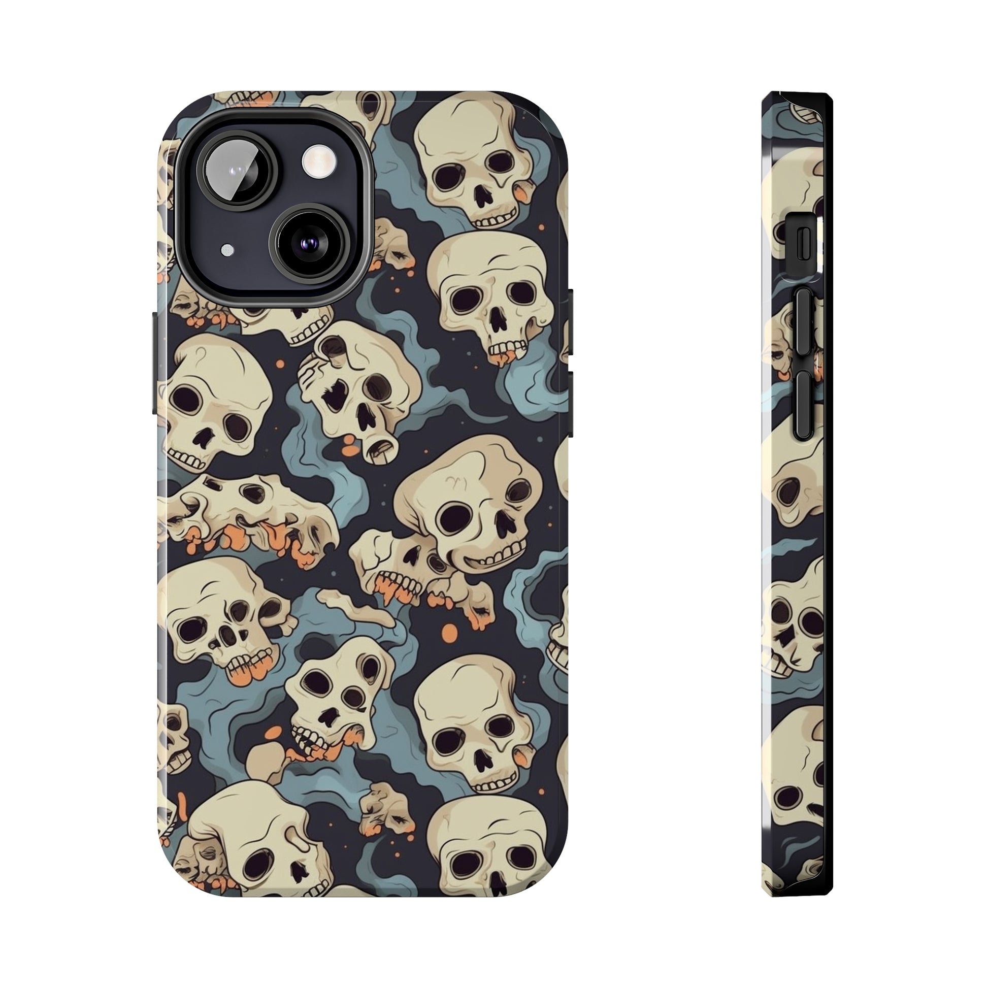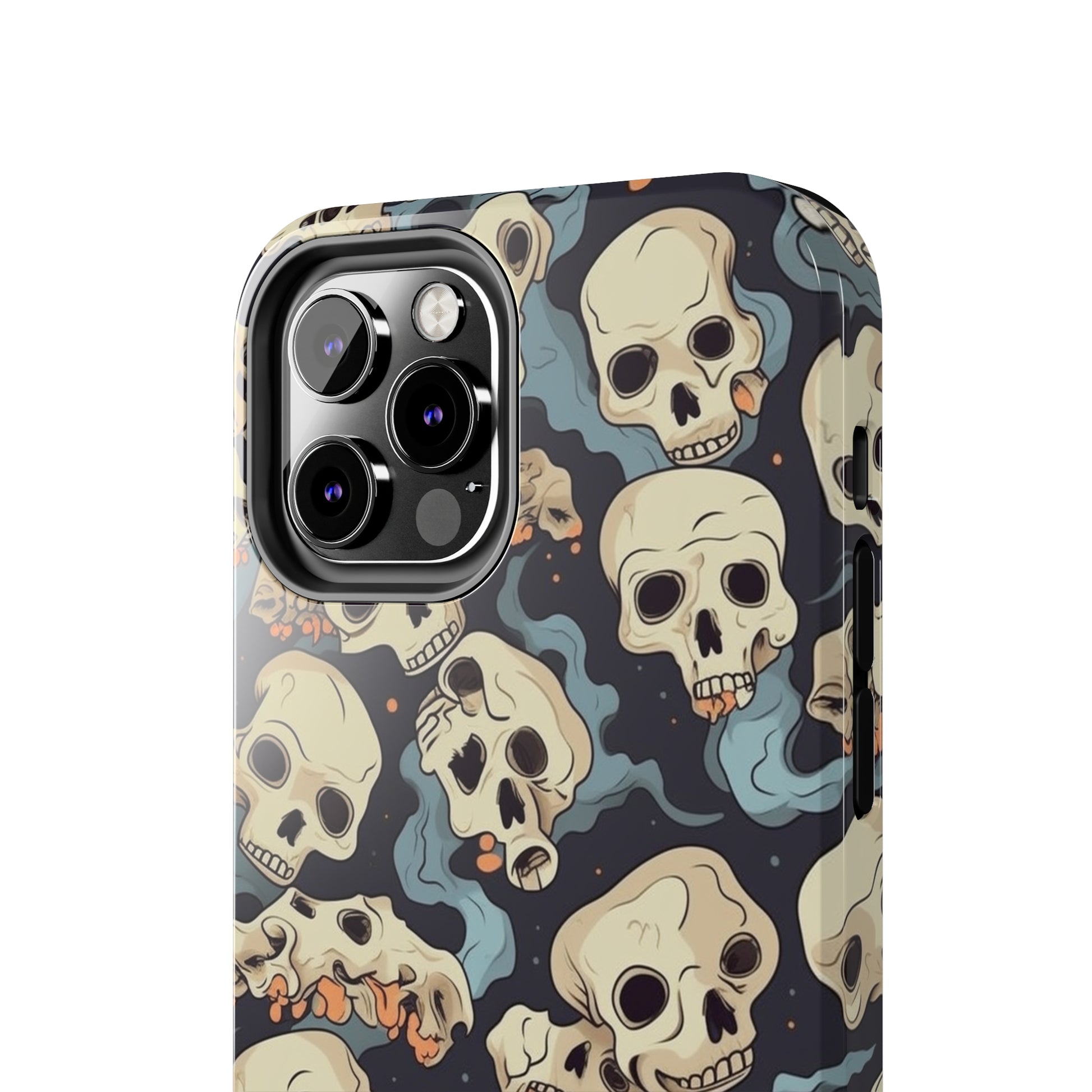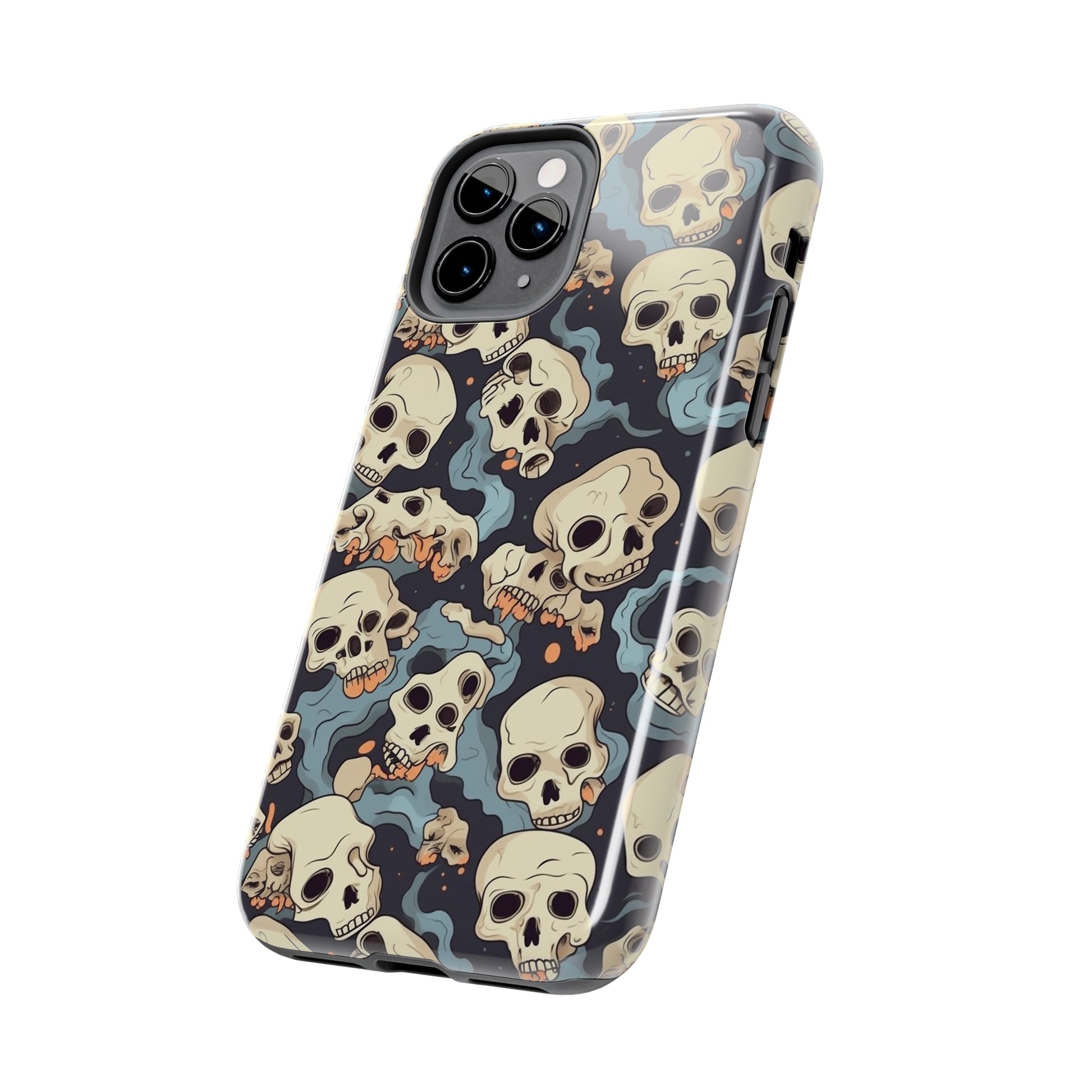 The Skull Flow - Deathly Protection - Tough Phone Cases from Case-Mate, the perfect accessory for those who demand both style and durability. This case features a stunning design of melting cream-colored skulls set against a dark blue background with flowing light blue goo, creating a striking and unique visual effect.