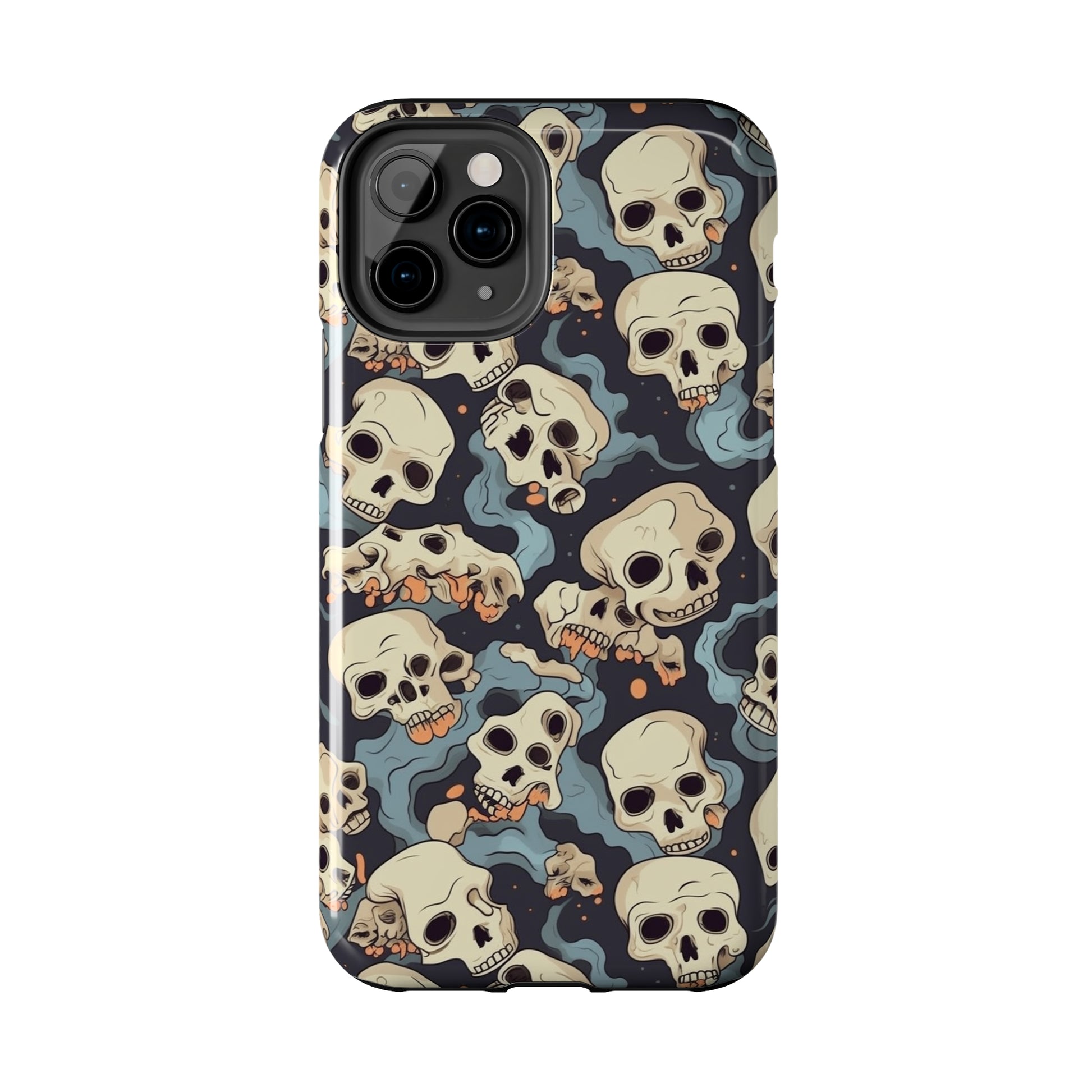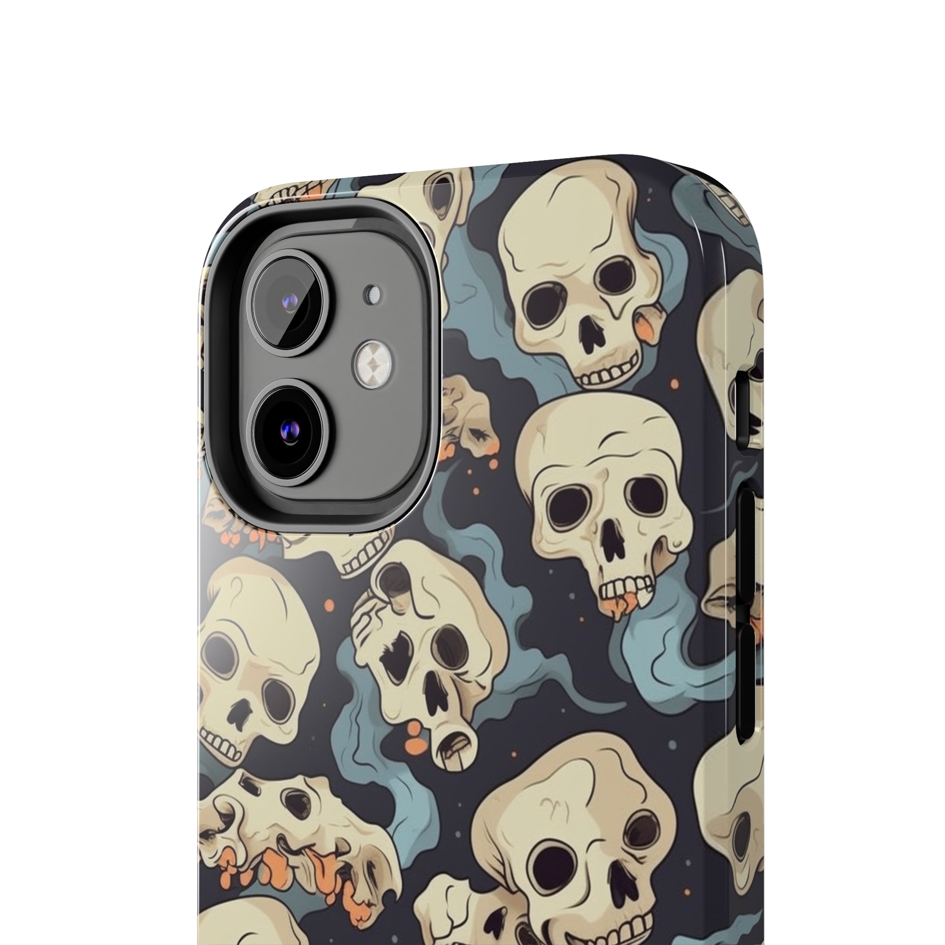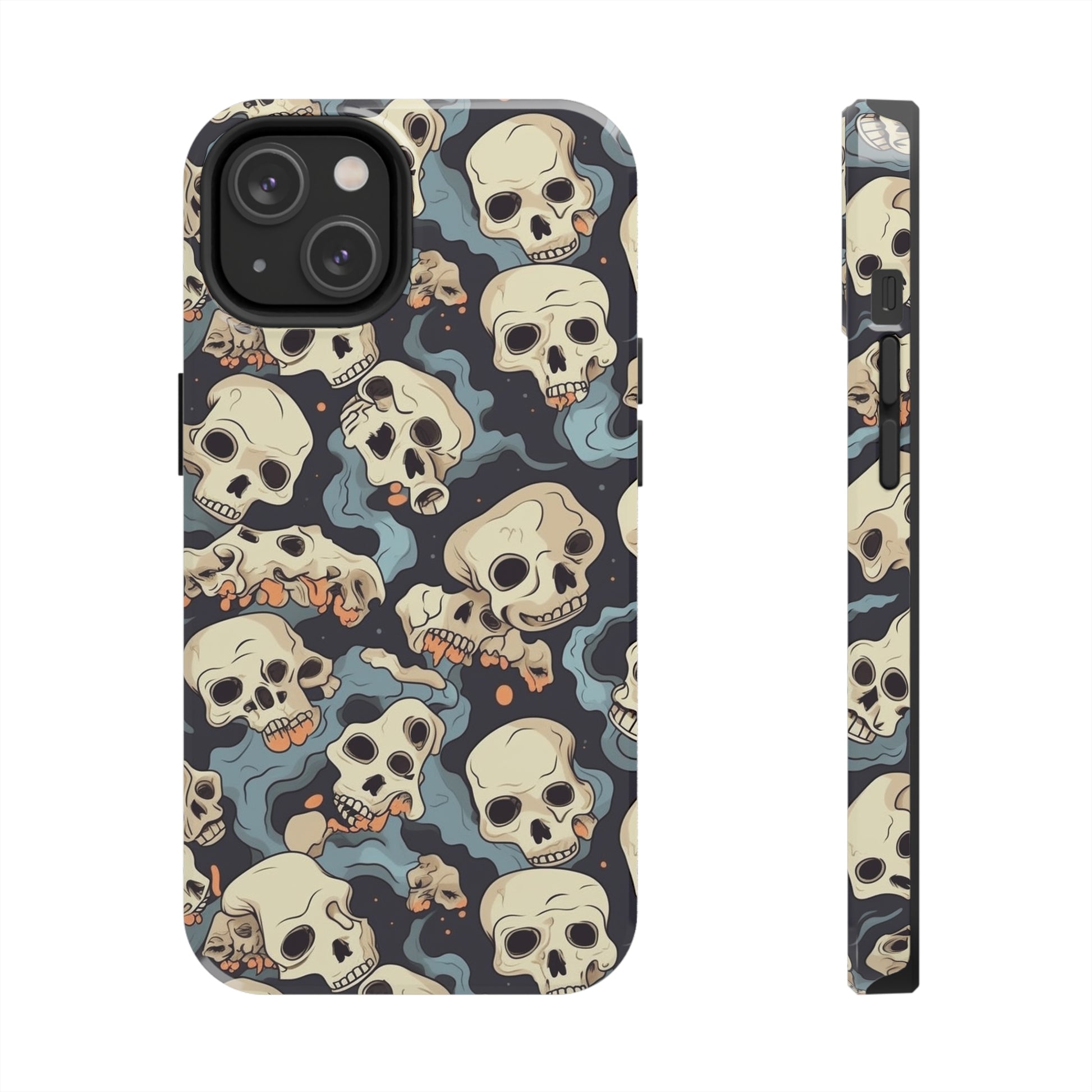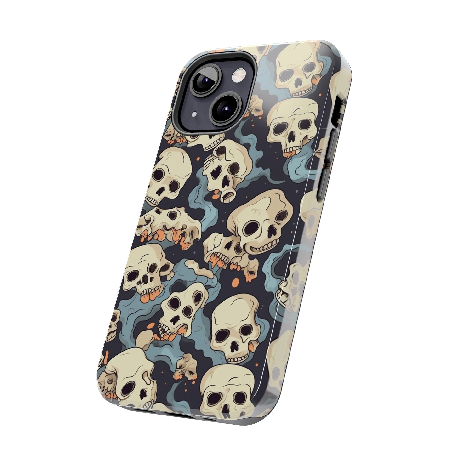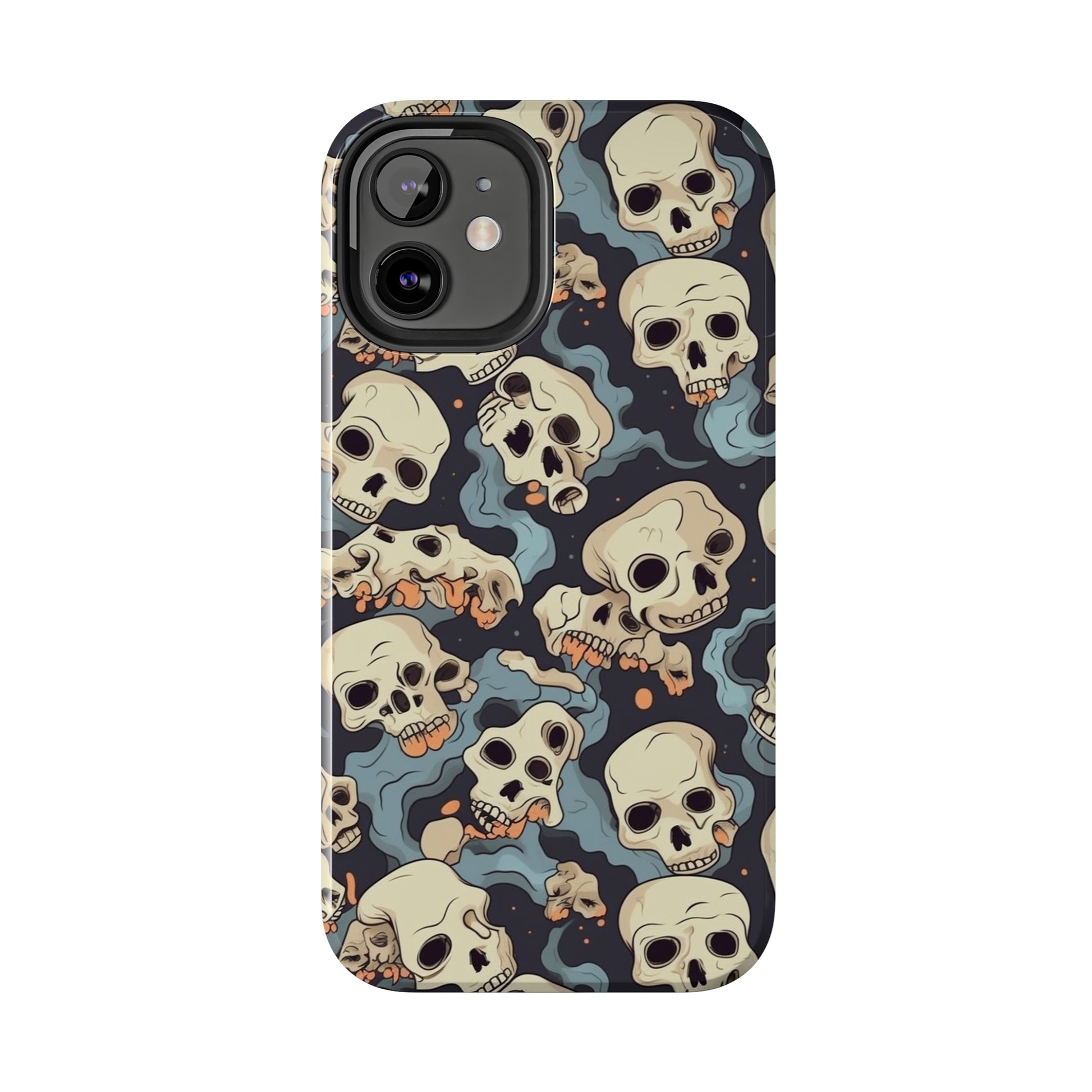 The Skull Flow - Deathly Protection - Tough Phone Cases from Case-Mate, the perfect accessory for those who demand both style and durability. This case features a stunning design of melting cream-colored skulls set against a dark blue background with flowing light blue goo, creating a striking and unique visual effect.