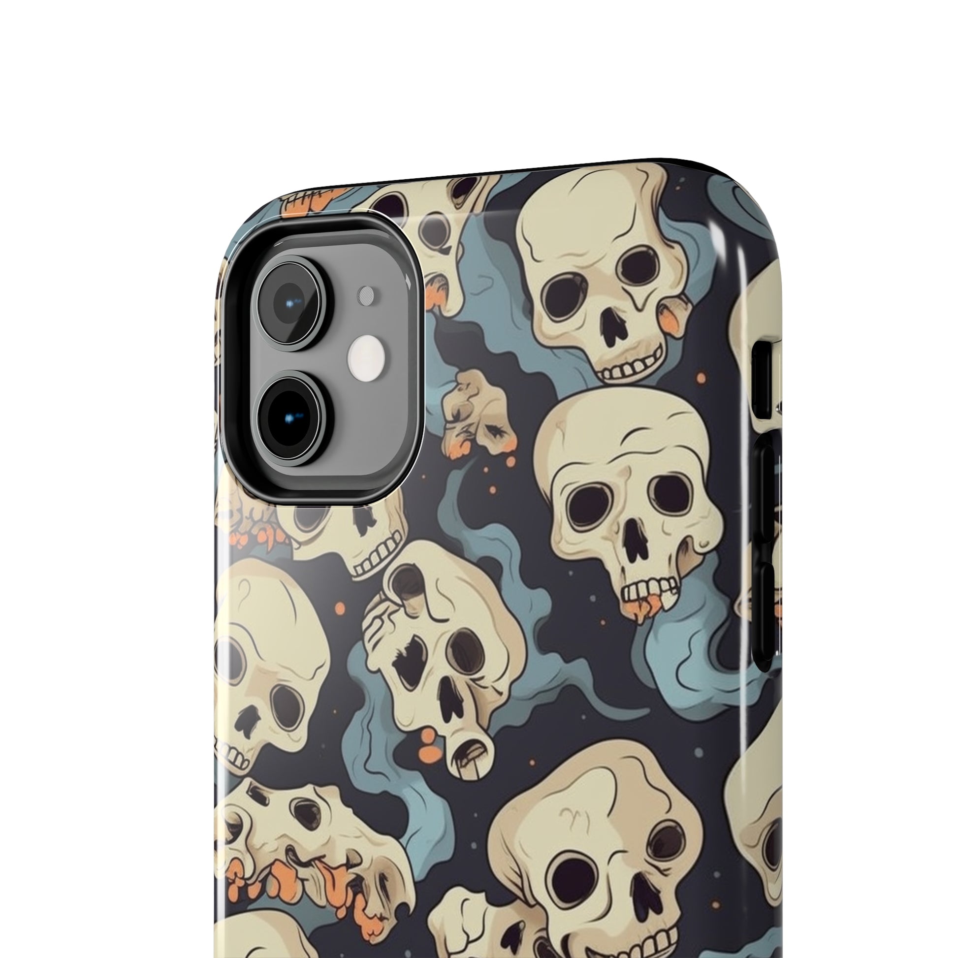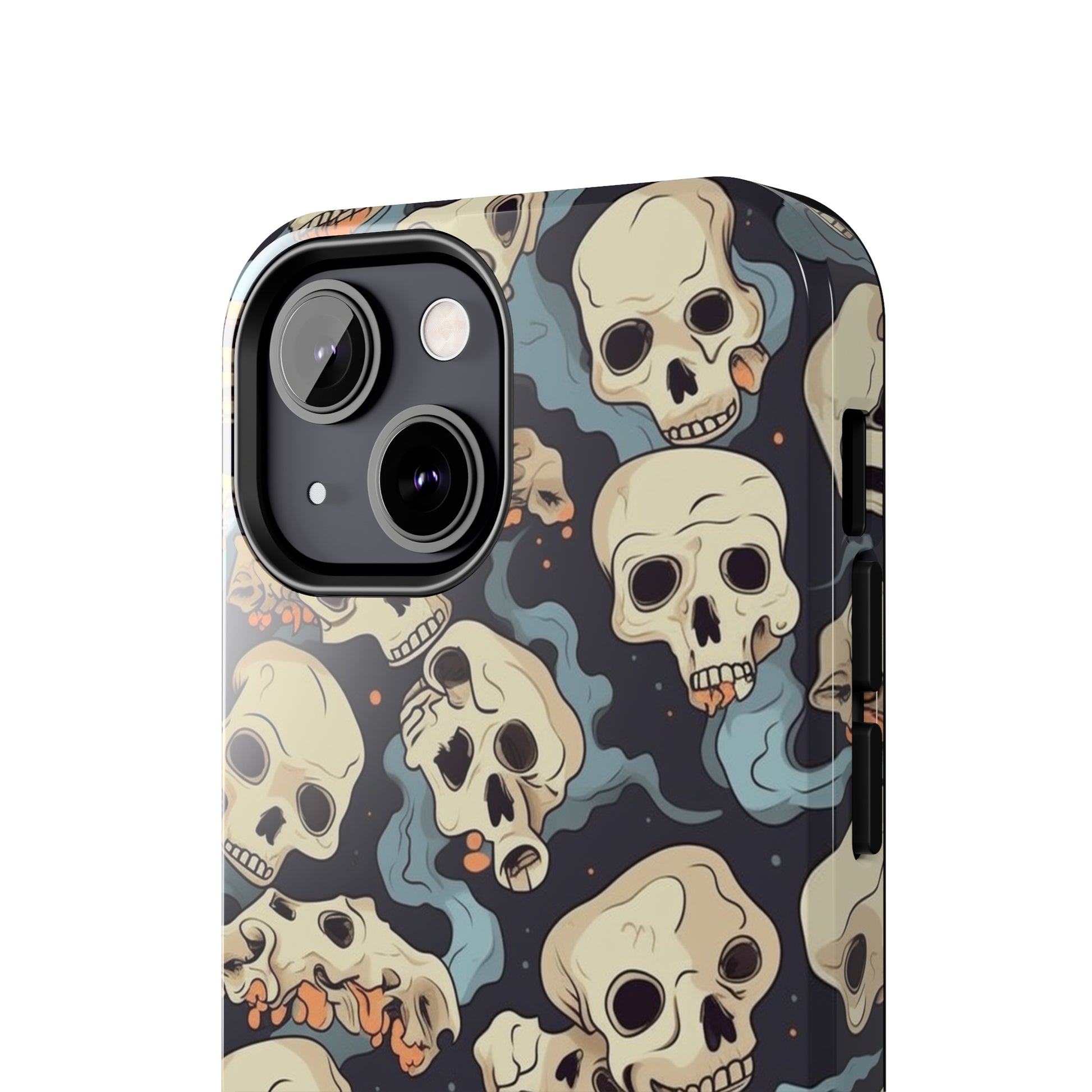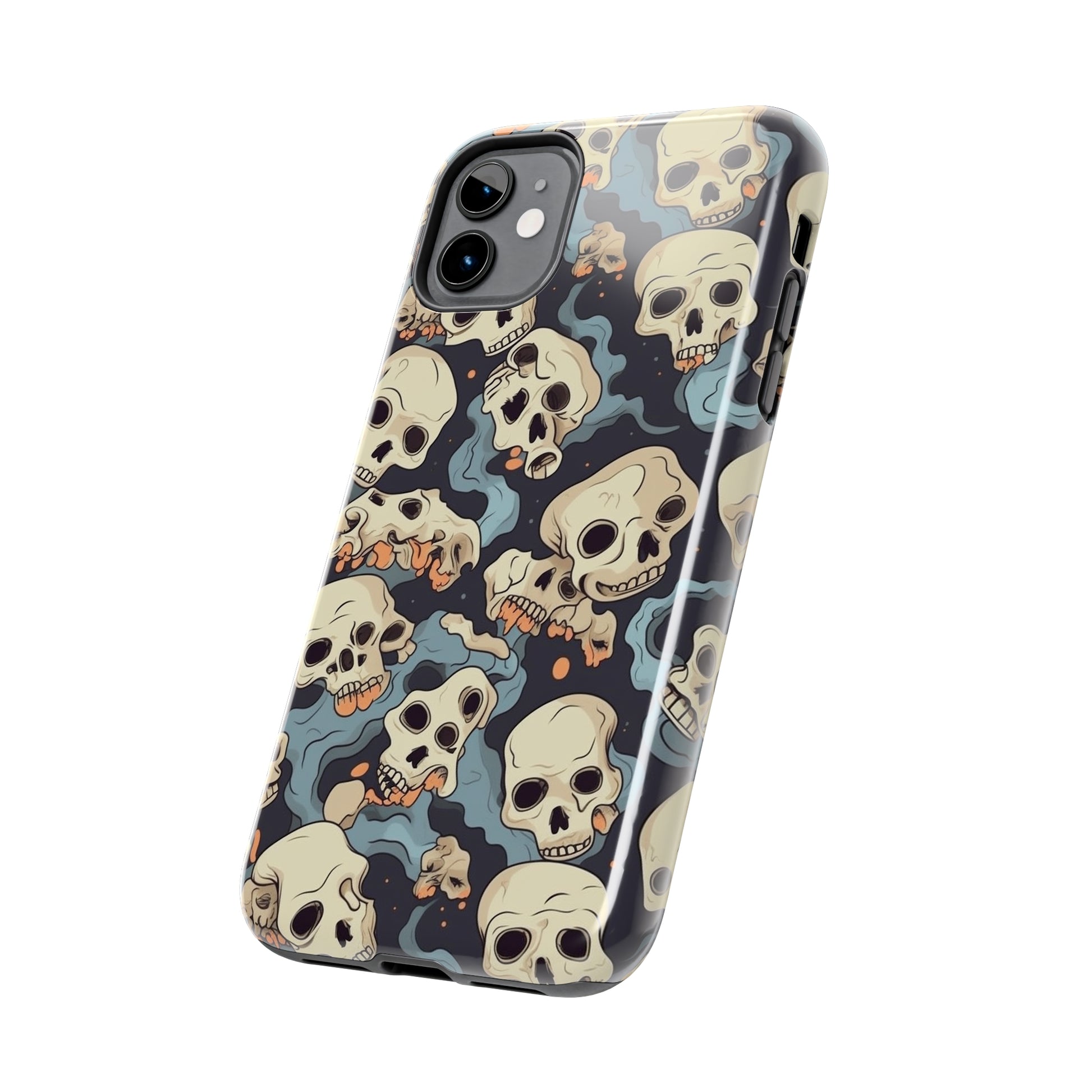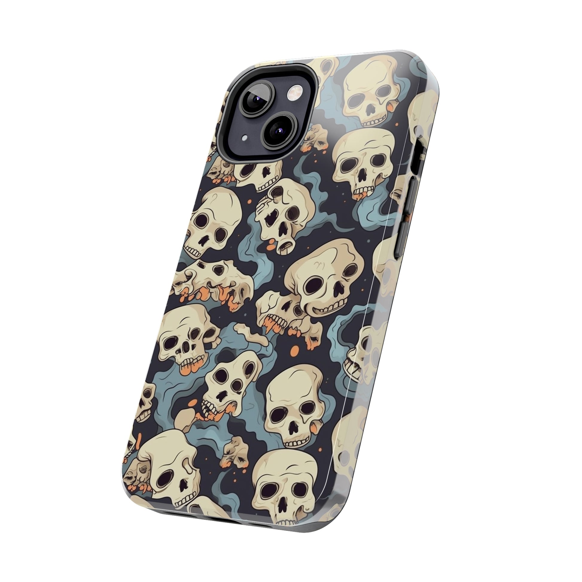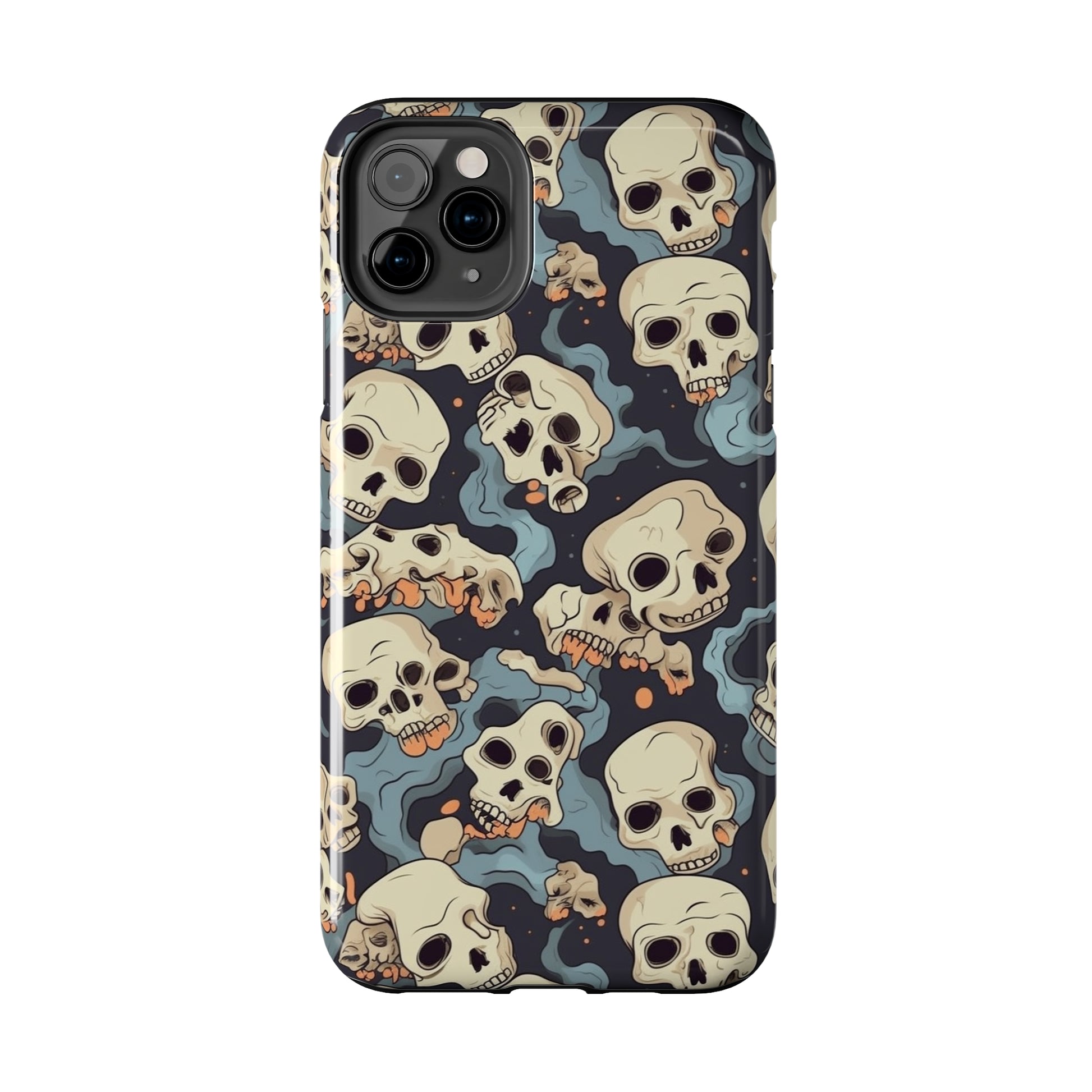 The Skull Flow - Deathly Protection - Tough Phone Cases from Case-Mate, the perfect accessory for those who demand both style and durability. This case features a stunning design of melting cream-colored skulls set against a dark blue background with flowing light blue goo, creating a striking and unique visual effect.