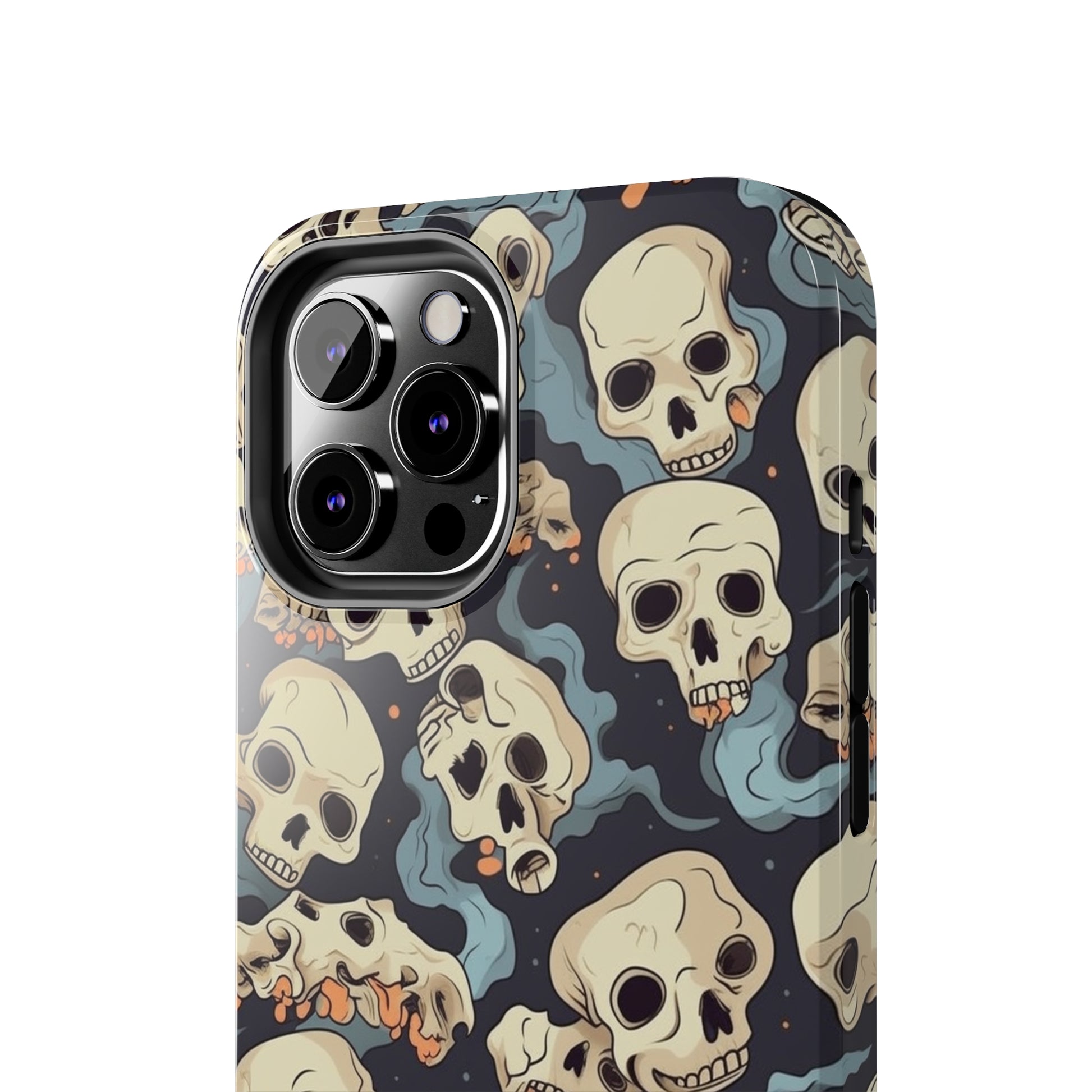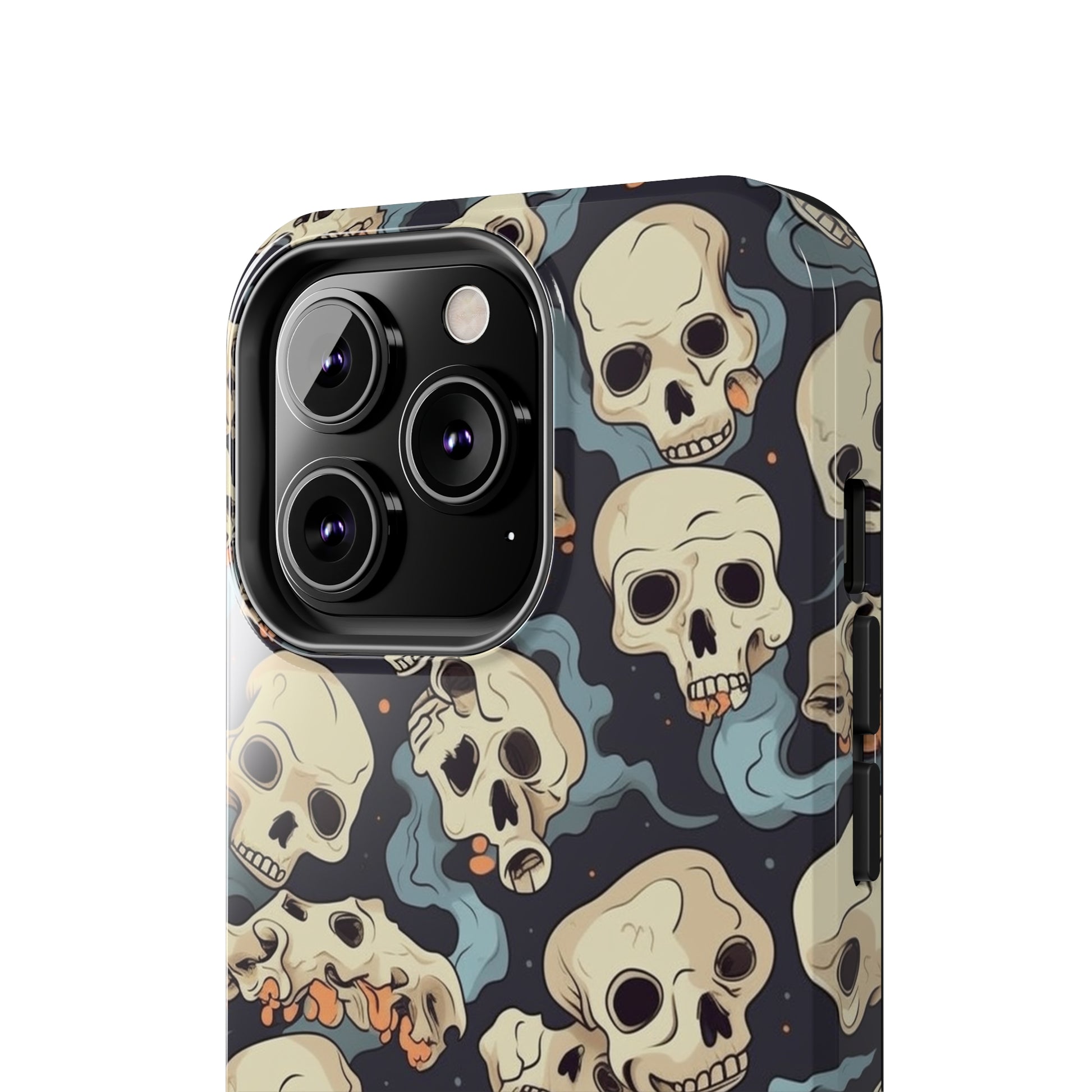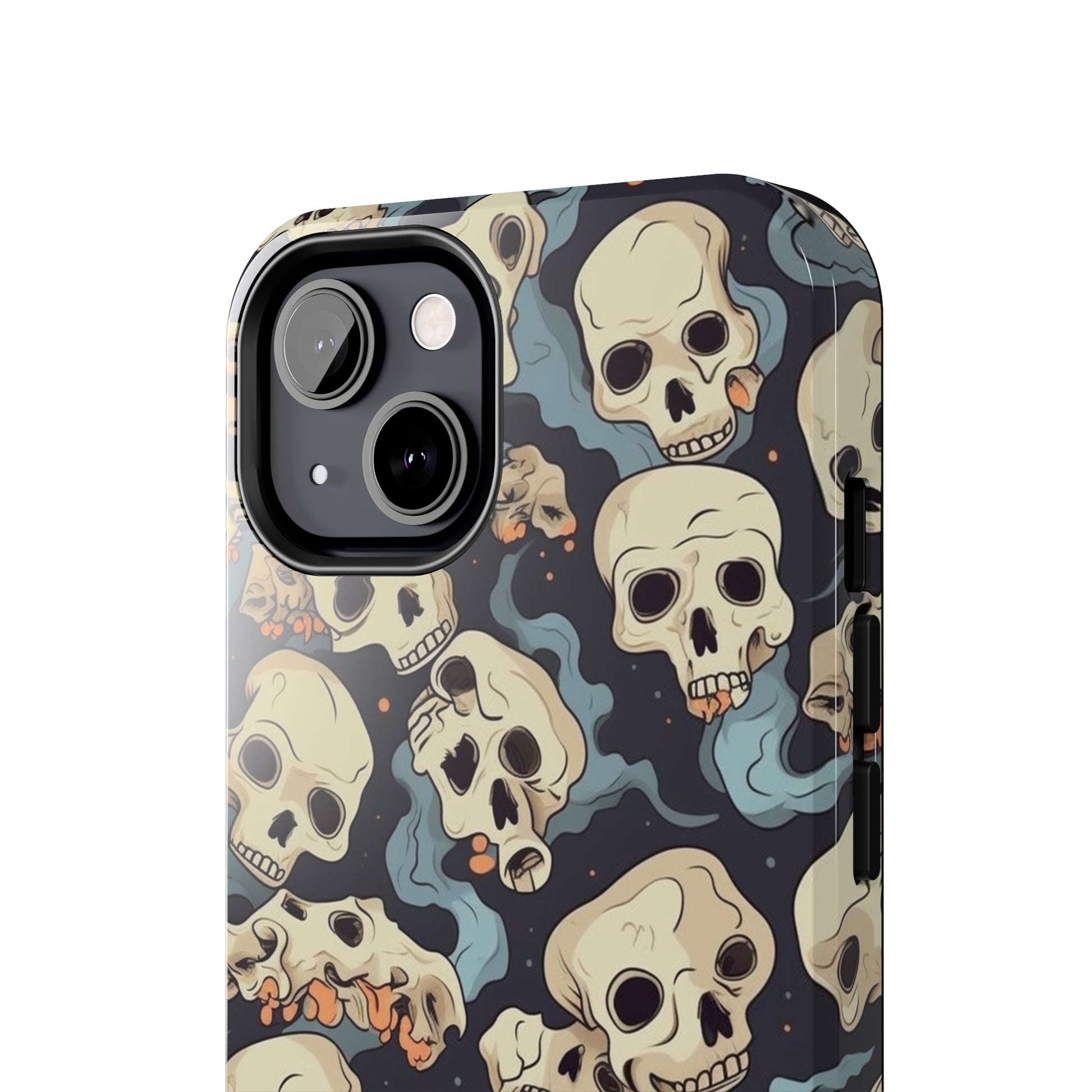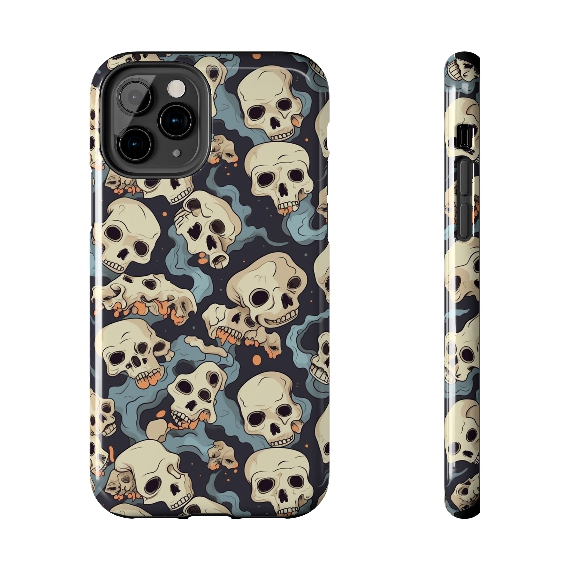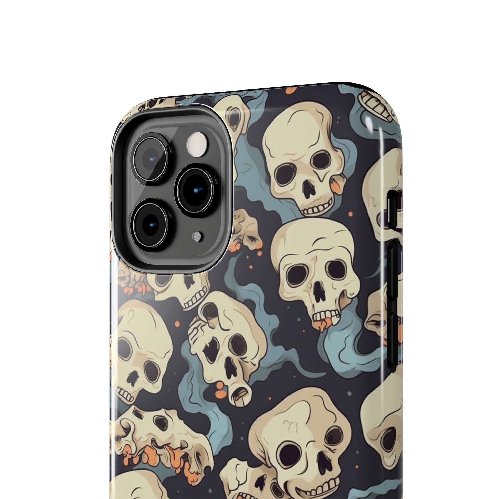 The Skull Flow - Deathly Protection - Tough Phone Cases from Case-Mate, the perfect accessory for those who demand both style and durability. This case features a stunning design of melting cream-colored skulls set against a dark blue background with flowing light blue goo, creating a striking and unique visual effect.