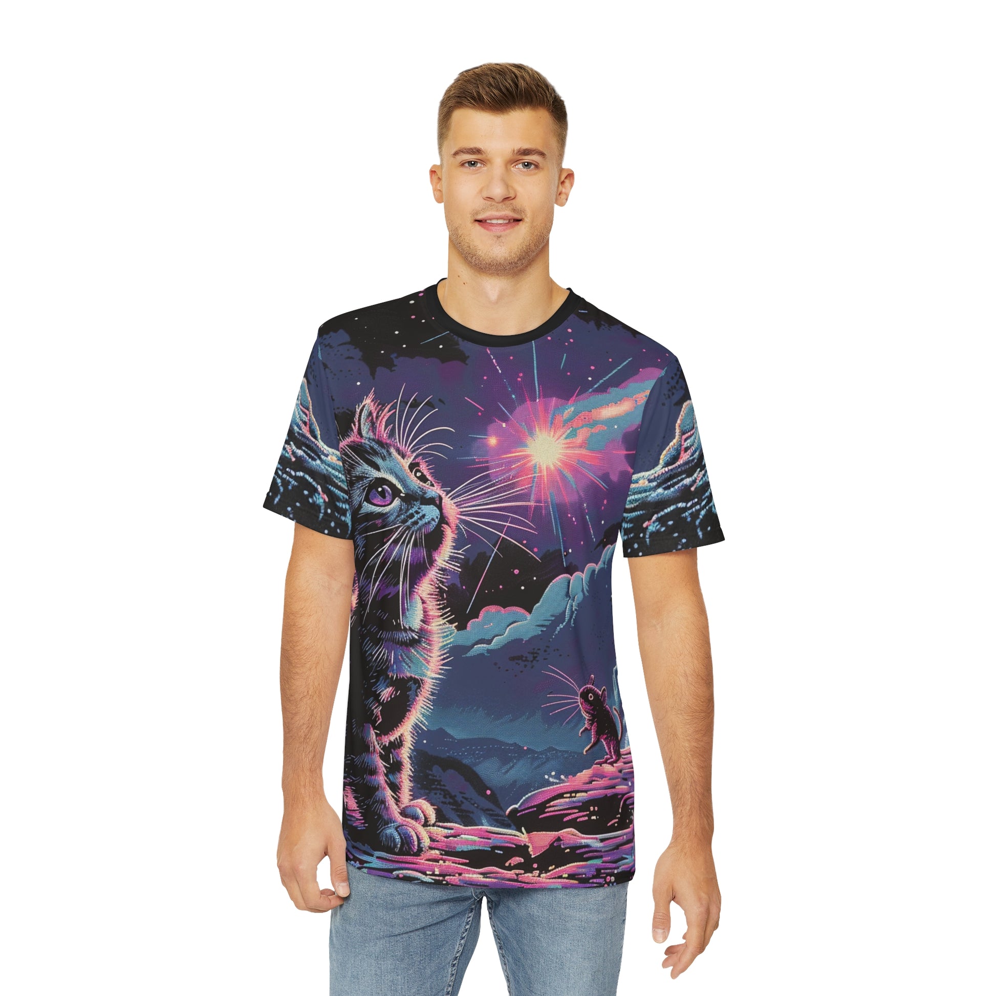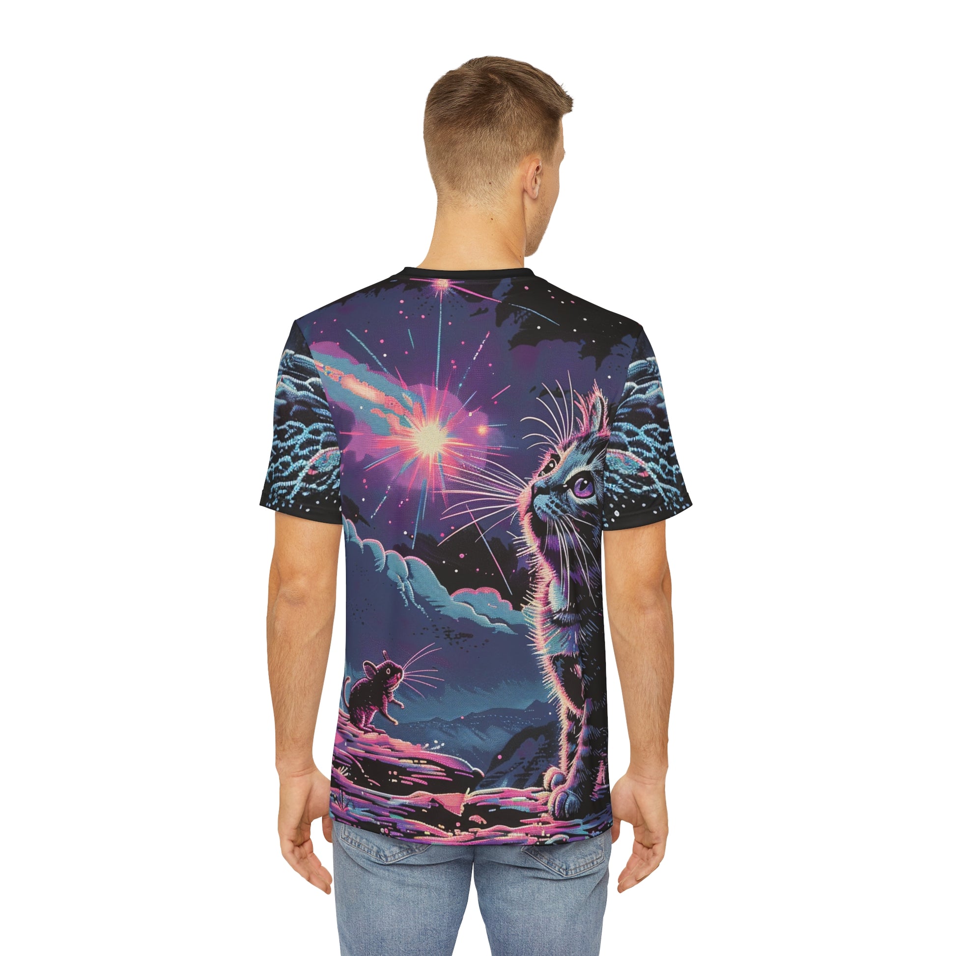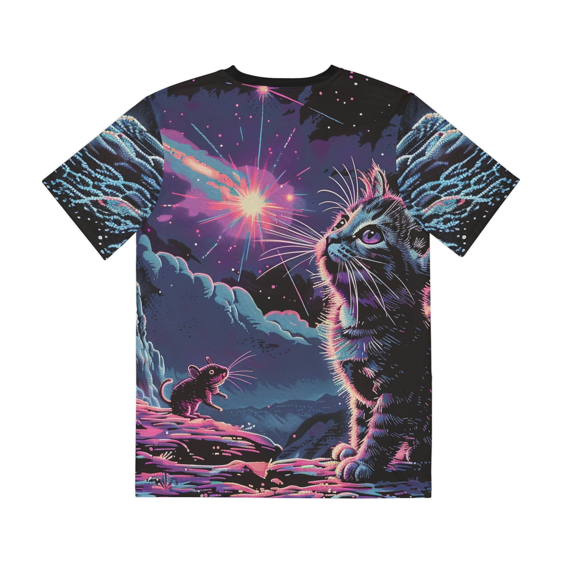 Starry Night Kitty & Mouse Tee - Cosmic Cat and Mouse Shirt