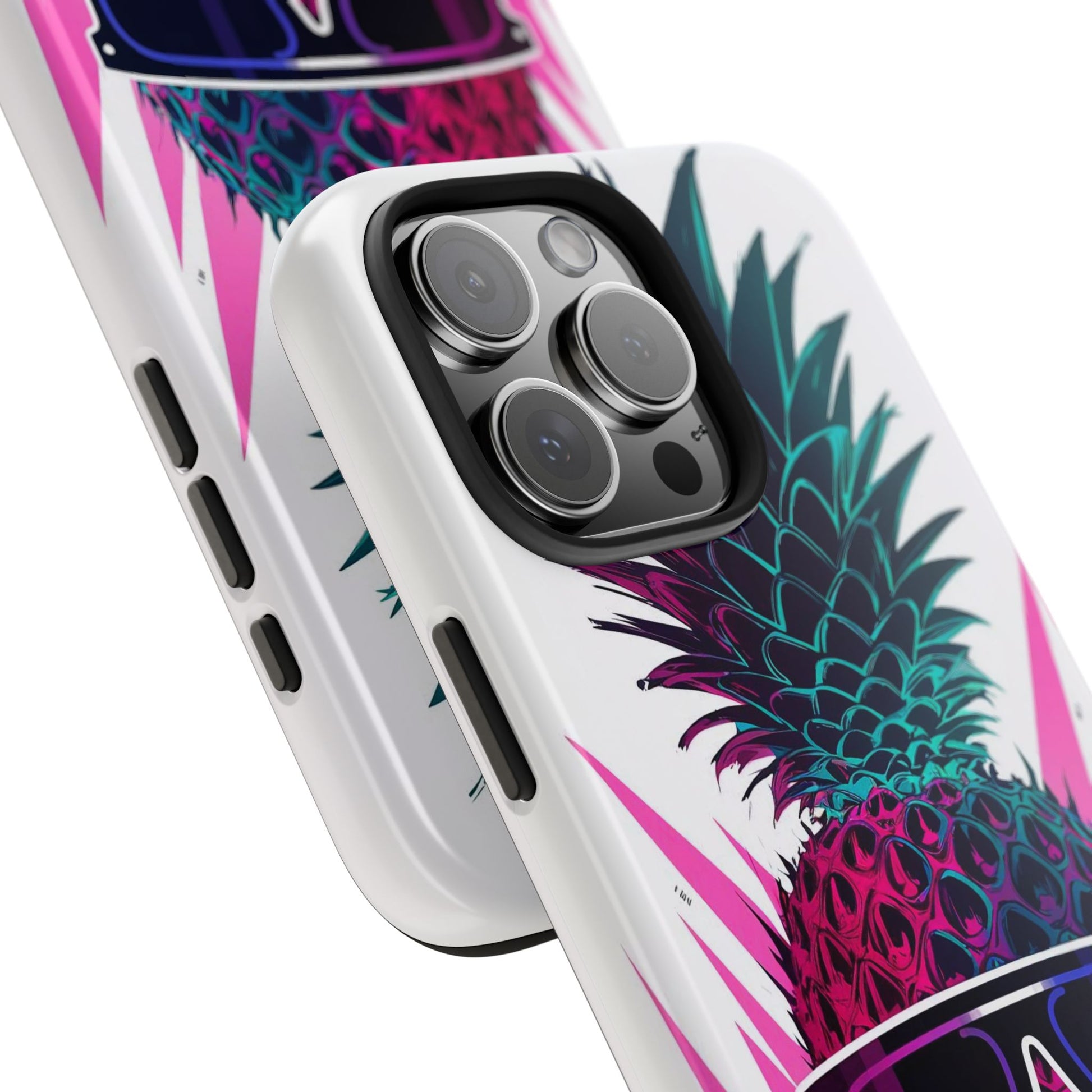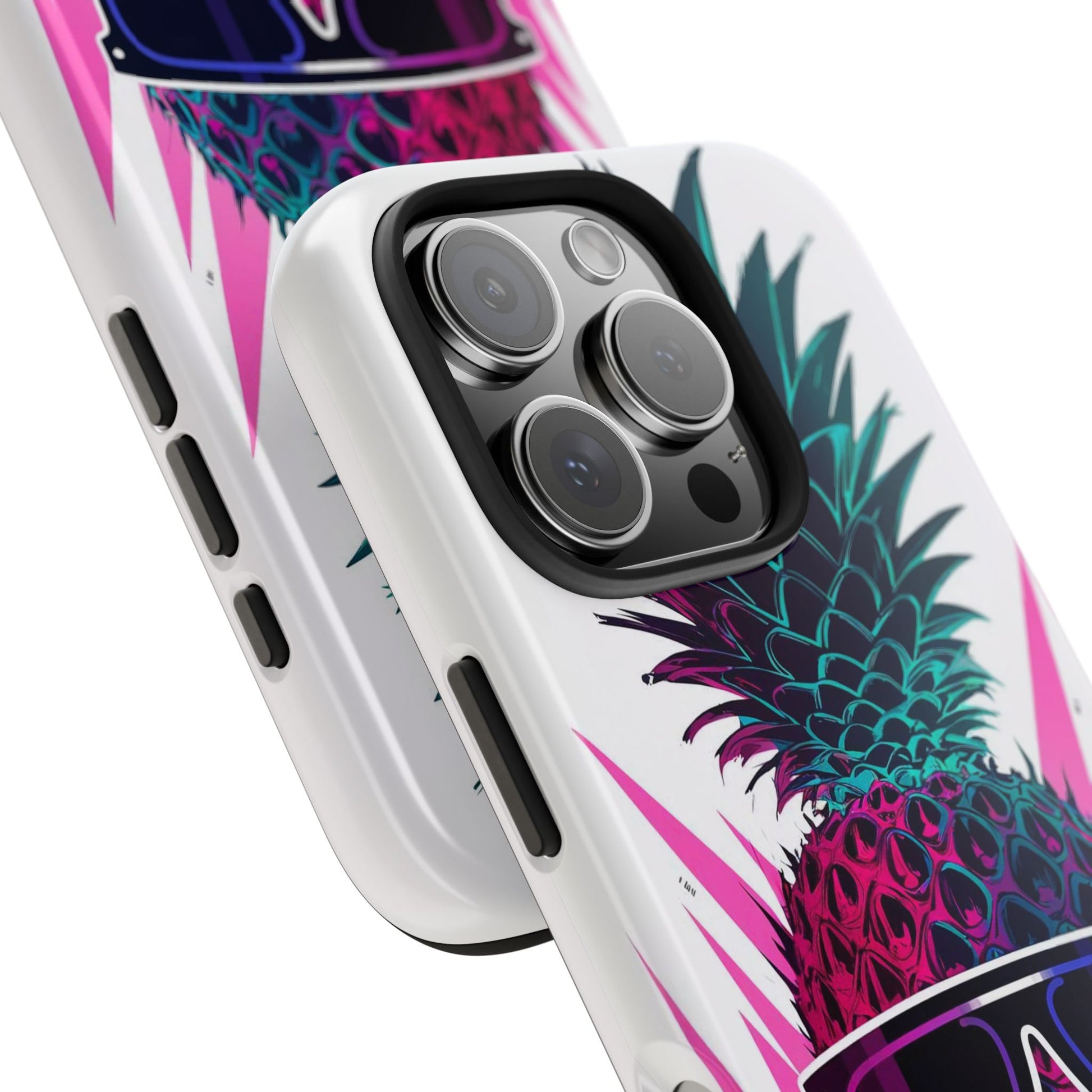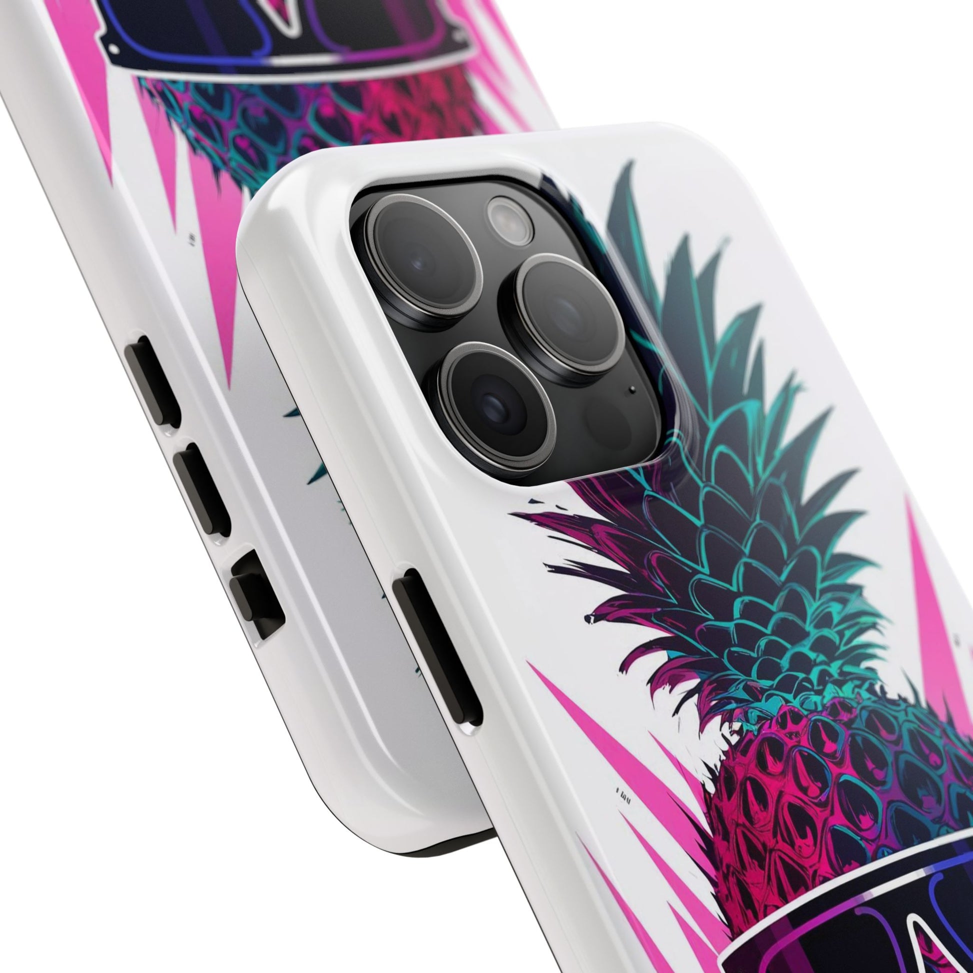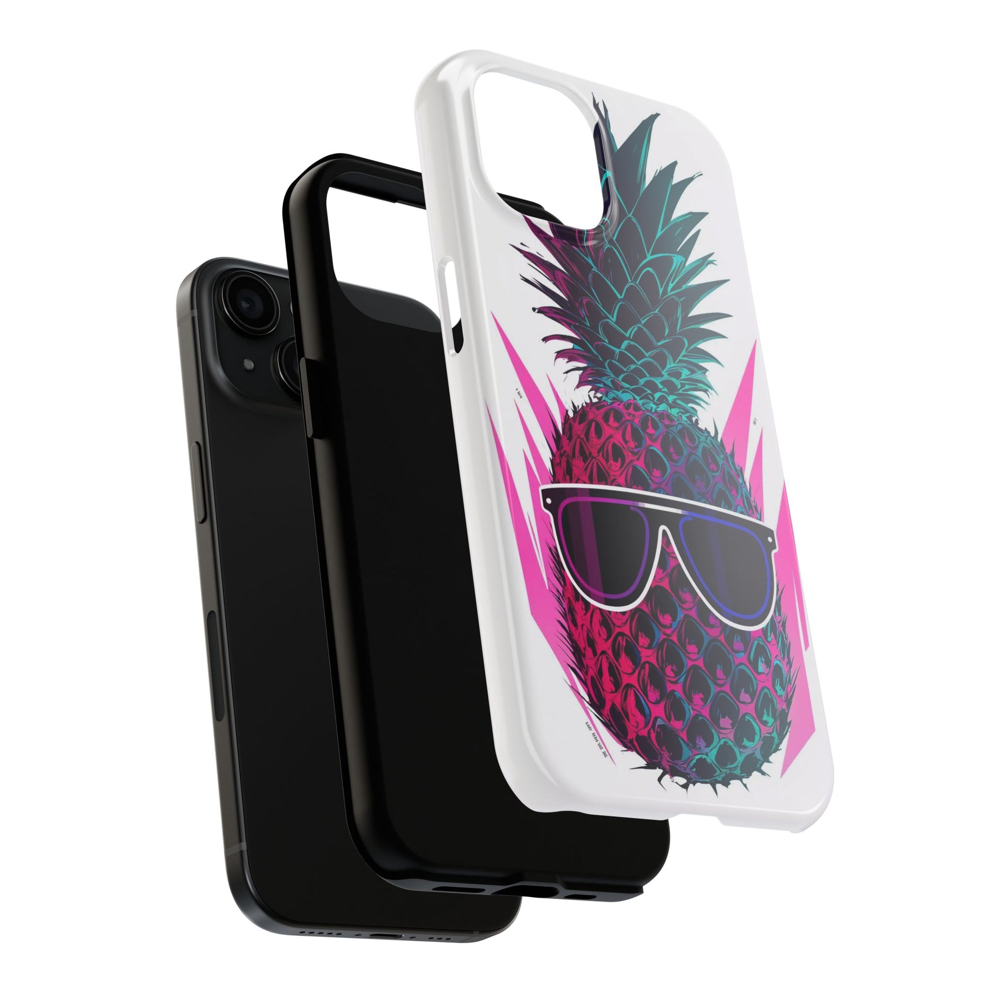 Make a statement with our Sunglass Clad Pineapple Funk Tough Phone Case, featuring a vibrant and stylized pineapple rocking a pair of sunglasses. This funky artwork exudes tropical vibes and adds a touch of whimsy to your device, perfect for those who love fun and playful designs.Crafted with a 2-piece design for enhanced protection, this case features a polycarbonate shell and TPU lining for durability. The interior rubber liner adds an extra layer of defense, ensuring your device stays safe from everyday bumps and drops.Compatible with iPhone 11, 12, 13, 14, 15, and more, our case supports wireless charging for added convenience (excluding MagSafe). Let the Sunglass Clad Pineapple Funk Tough Phone Case showcase your unique style. Shop now and protect your phone with flair!