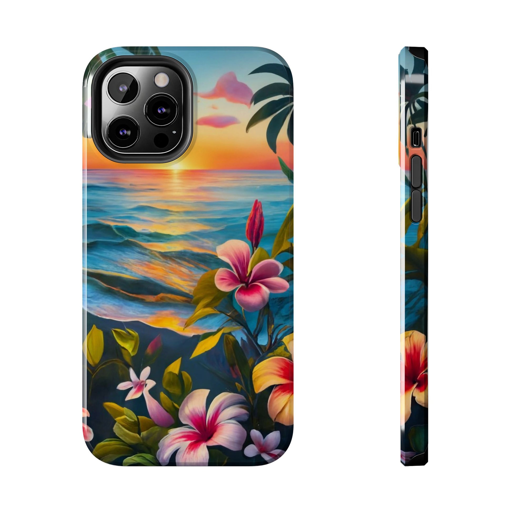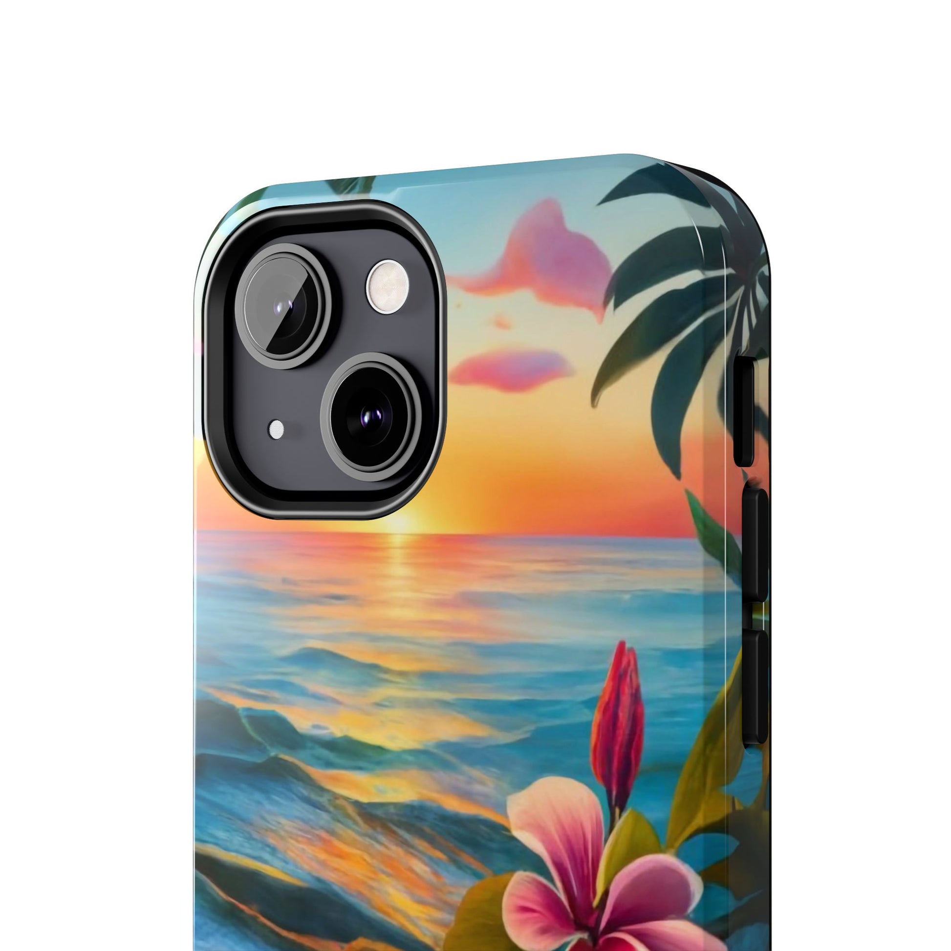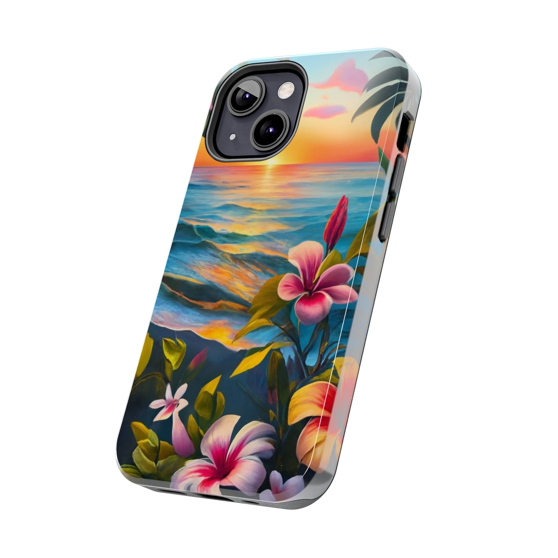 Capture the essence of a tropical sunset with our Sunset Palms and Hibiscus Tough Phone Case, featuring a stunning artwork of palm trees, hibiscus flowers, and a vibrant sunset backdrop. This captivating scene evokes the warmth and tranquility of a tropical paradise, perfect for adding a touch of serenity to your phone.Crafted with a 2-piece design for enhanced protection, this case features a polycarbonate shell and TPU lining for durability. The interior rubber liner adds an extra layer of defense, ensuring your device stays safe from everyday bumps and drops.Compatible with iPhone 11, 12, 13, 14, 15, and more, our case supports wireless charging for added convenience (excluding MagSafe). Let the beauty of a tropical sunset adorn your phone with our Sunset Palms and Hibiscus Tough Phone Case. Shop now and protect your device with style!