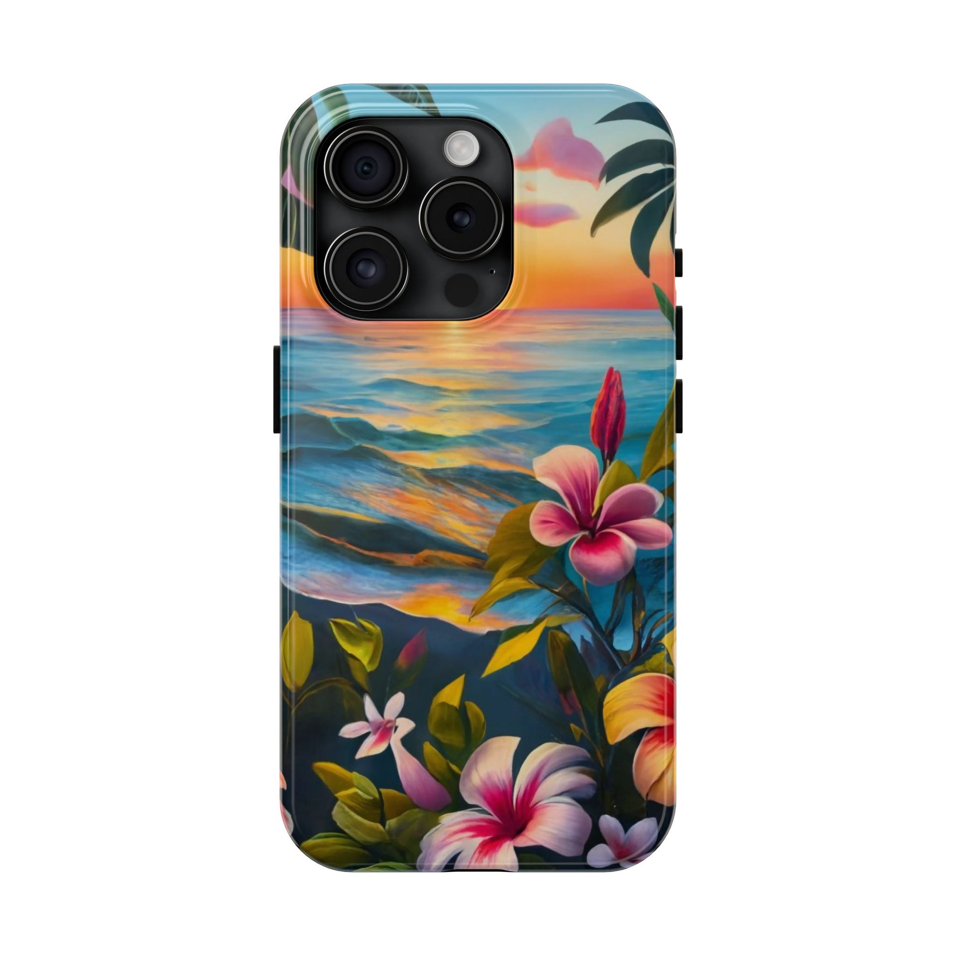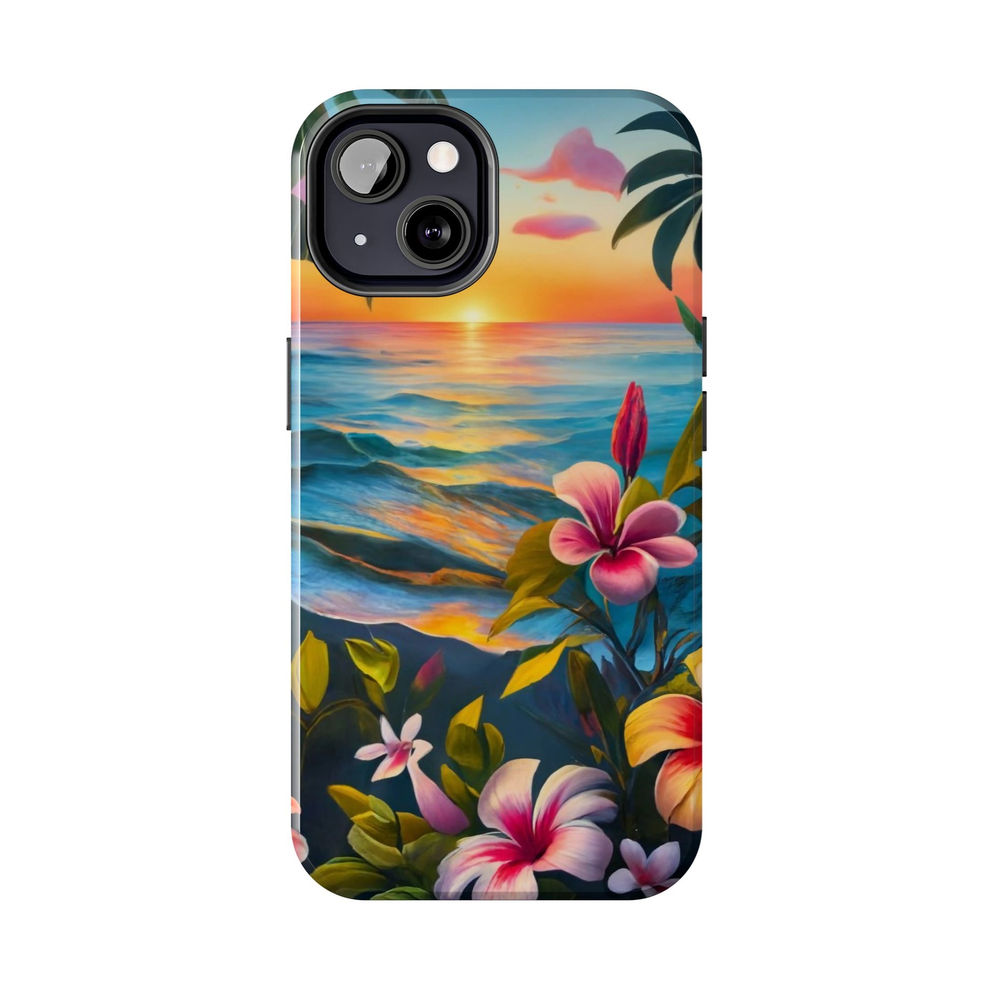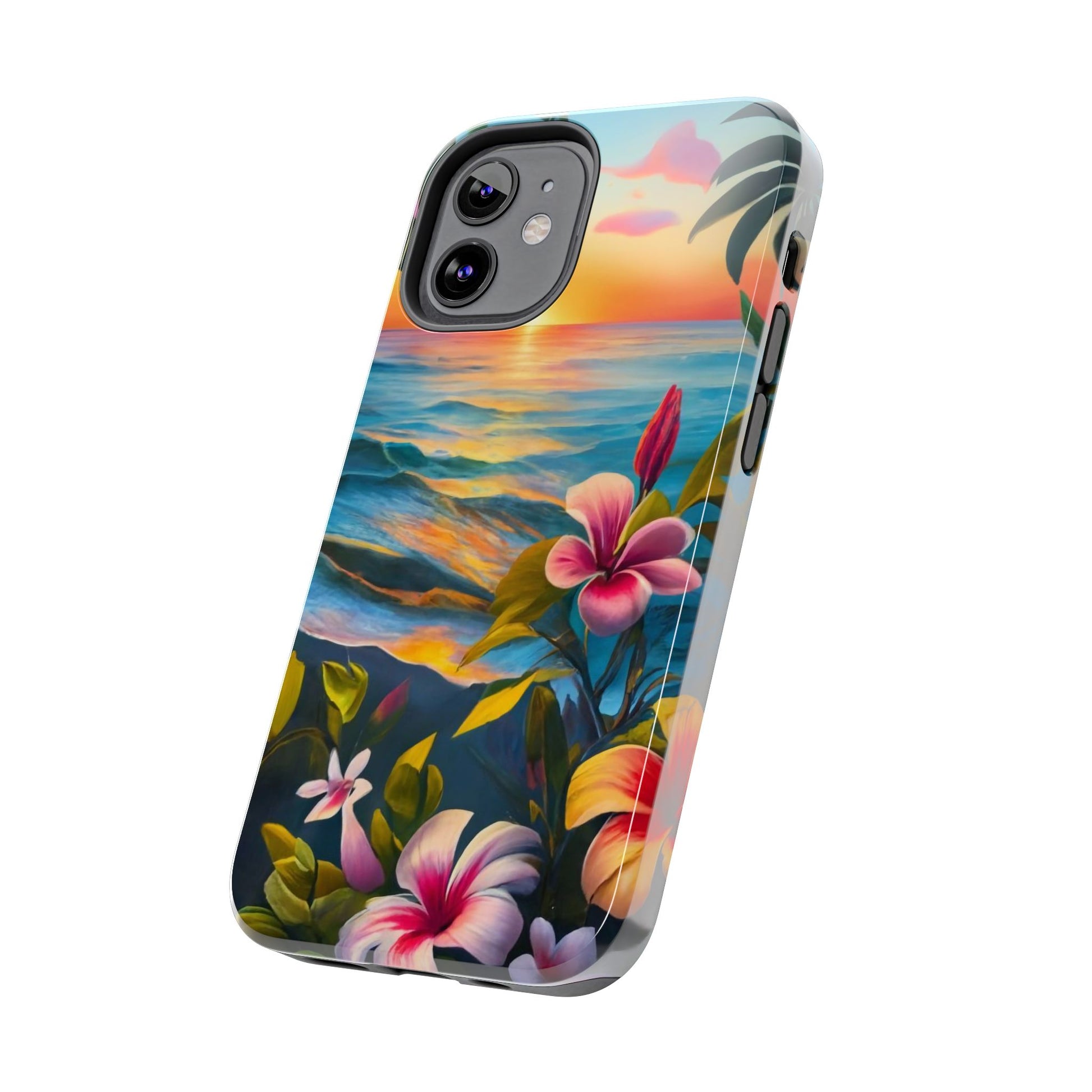 Capture the essence of a tropical sunset with our Sunset Palms and Hibiscus Tough Phone Case, featuring a stunning artwork of palm trees, hibiscus flowers, and a vibrant sunset backdrop. This captivating scene evokes the warmth and tranquility of a tropical paradise, perfect for adding a touch of serenity to your phone.Crafted with a 2-piece design for enhanced protection, this case features a polycarbonate shell and TPU lining for durability. The interior rubber liner adds an extra layer of defense, ensuring your device stays safe from everyday bumps and drops.Compatible with iPhone 11, 12, 13, 14, 15, and more, our case supports wireless charging for added convenience (excluding MagSafe). Let the beauty of a tropical sunset adorn your phone with our Sunset Palms and Hibiscus Tough Phone Case. Shop now and protect your device with style!