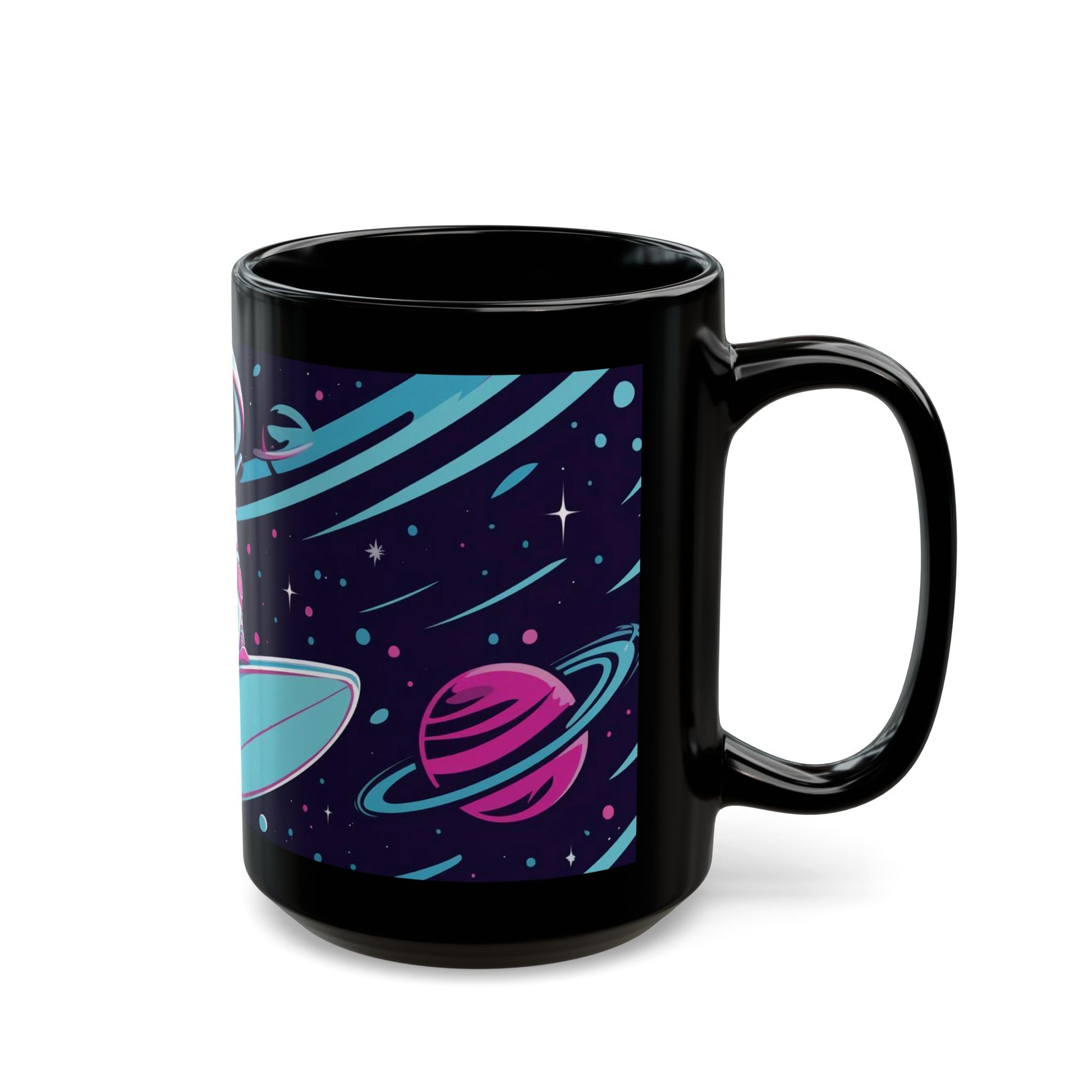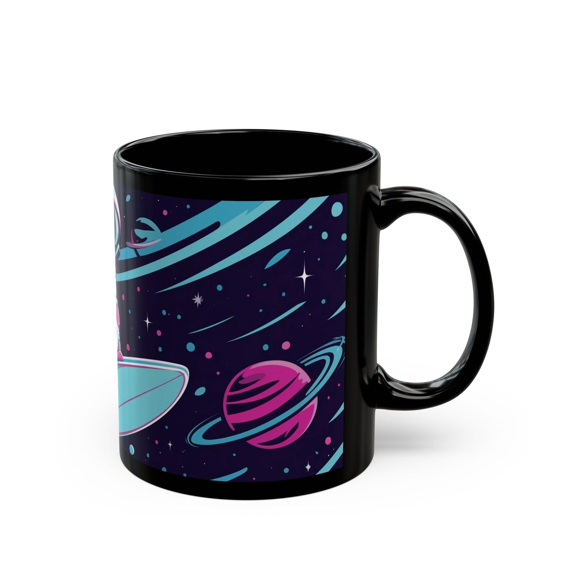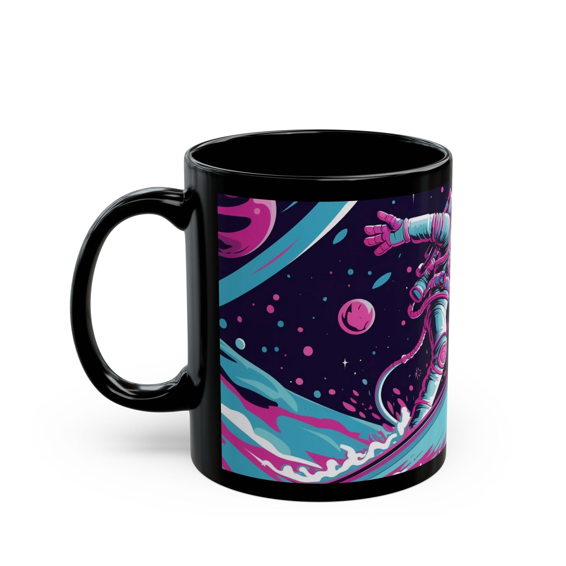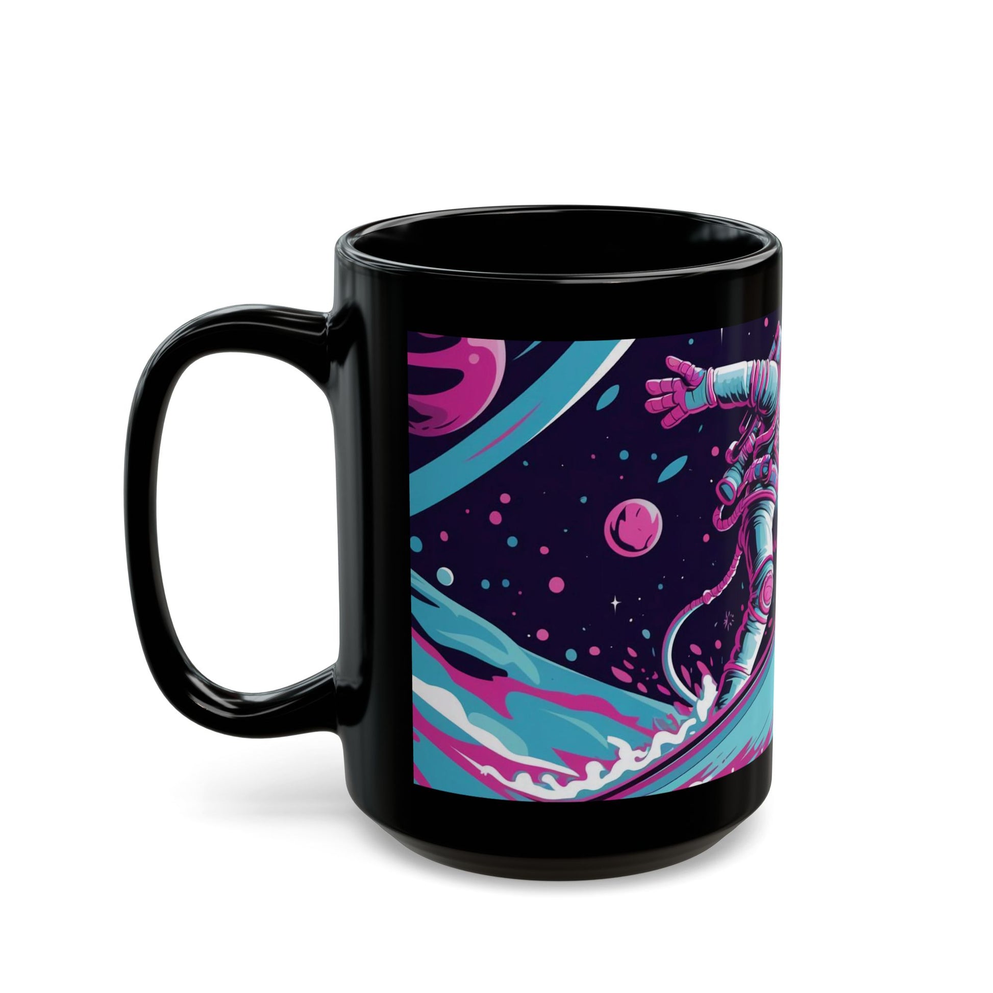 Catch the cosmic waves with this exciting ceramic coffee mug featuring an astronaut riding a surfboard through the vast, starry expanse of space. Surrounded by swirling planets and twinkling stars, this vibrant, futuristic design bursts with bold lines and a bright color palette. Perfect for dreamers, explorers, and space enthusiasts, this mug brings a sense of wonder and adventure to every sip. Available in 11oz and 15oz sizes, this BPA and lead-free mug is microwave and dishwasher safe, making it both fun and practical for your daily routine.