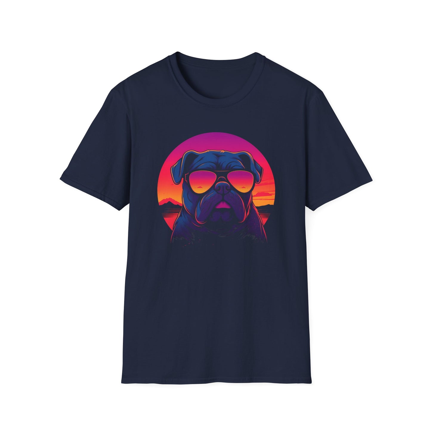 Synthwave Sunset Bulldog Unisex Softstyle T-Shirt - Comfortable Tee with Retro Bulldog Design for Vintage Vibes