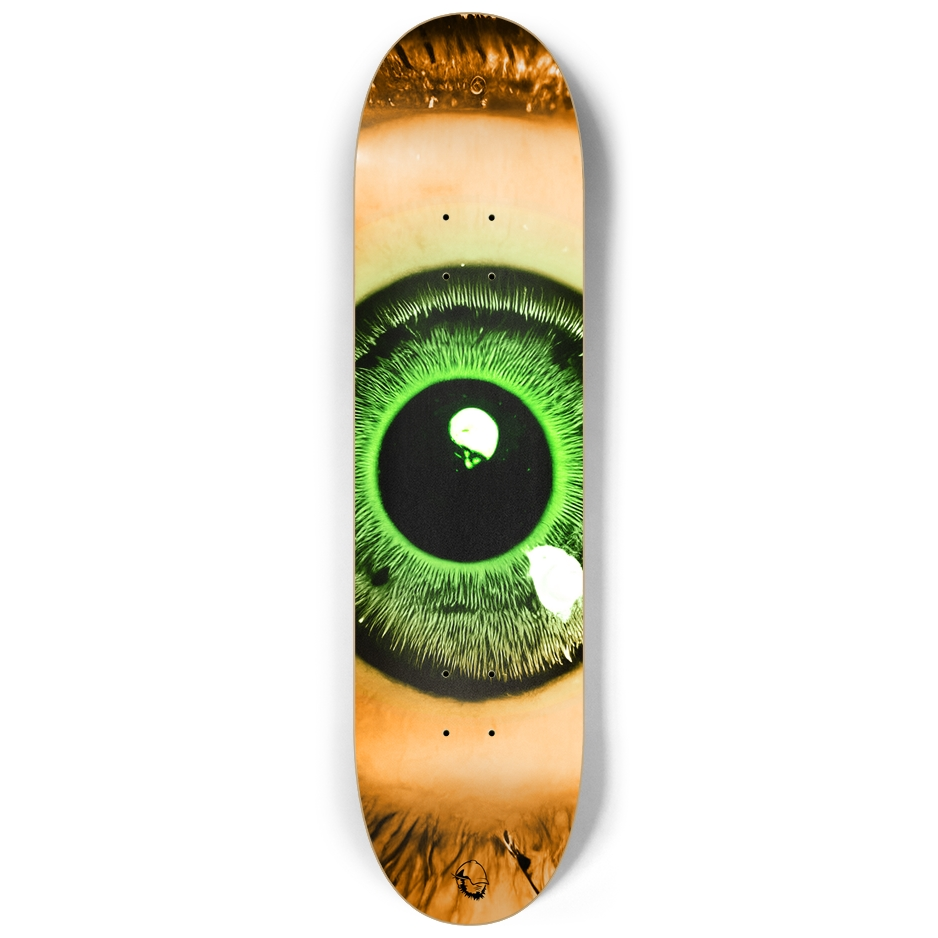 The Cornea Cruiser is an 8.25 inch popsicle skateboard deck that will definitely turn heads with its unique and eye-catching design. Featuring a bold graphic of a large eyeball in vivid green and orange colors, this deck is sure to make a statement wherever you ride.