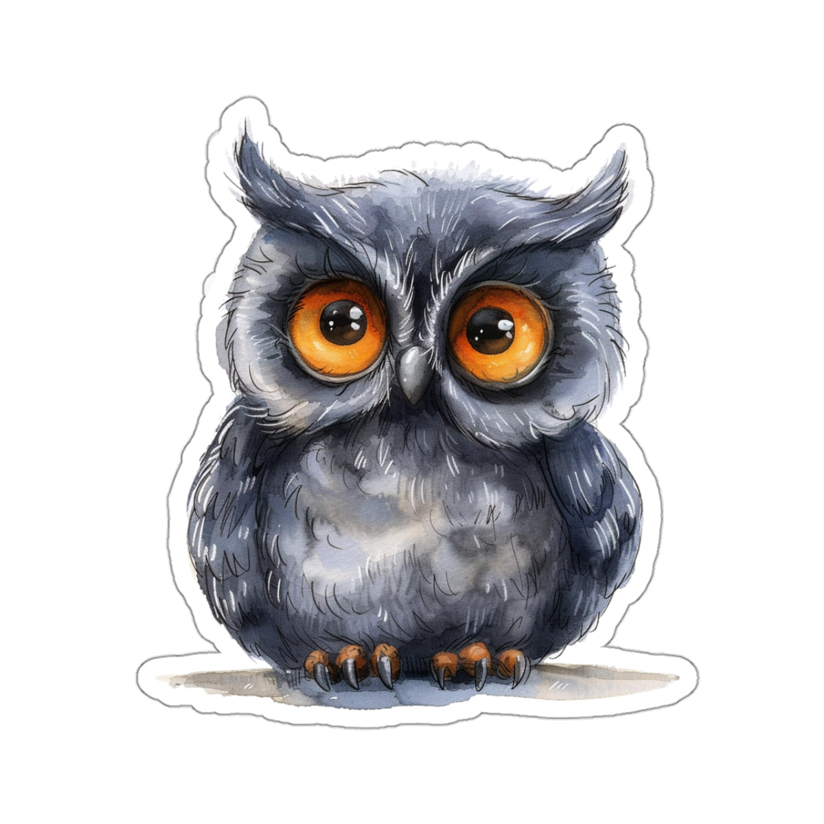 Unleash the enchantment with our Whimsical Gray Owl Watercolor Cartoon Sticker! This delightful sticker features a charming watercolor